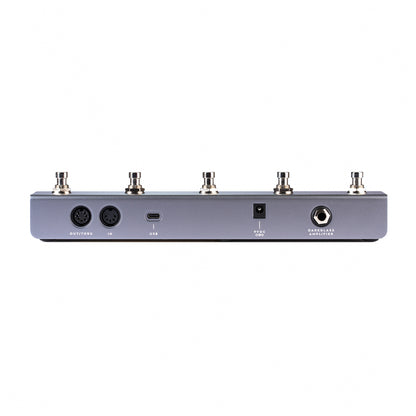 - 5 footswitch buttons with RGB LED indicators.