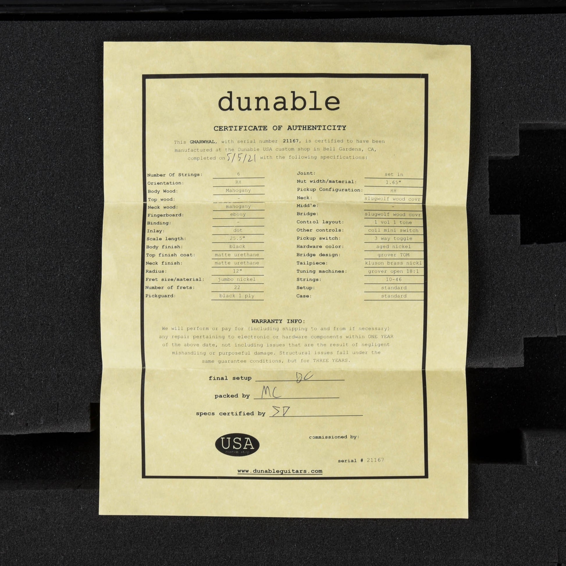 | Cosmetic Condition: | This used Dunable guitar is in good condition. The finish is matte with some small dings on the body. |