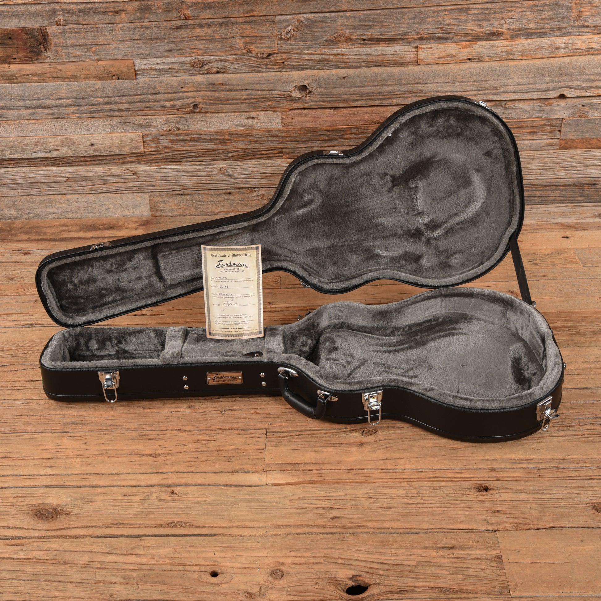 | Tech Notes: | This Eastman plays well with low action. The frets are tall and show no wear. |