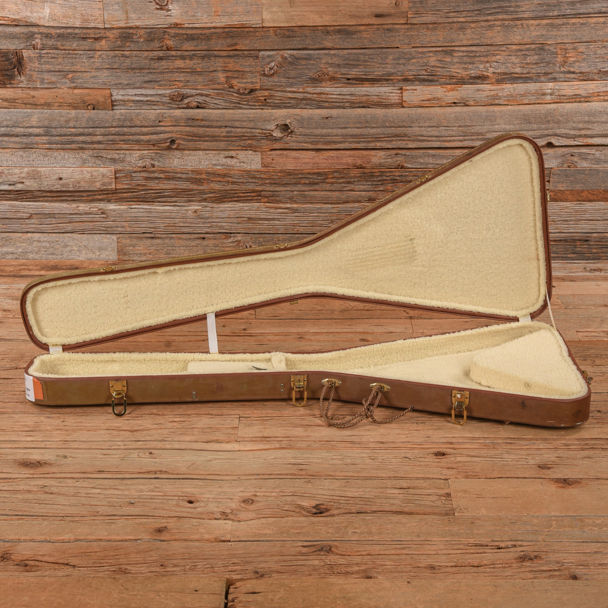 | Tech Notes: | This Flying V plays well with low action. The frets are tall and show light wear. |