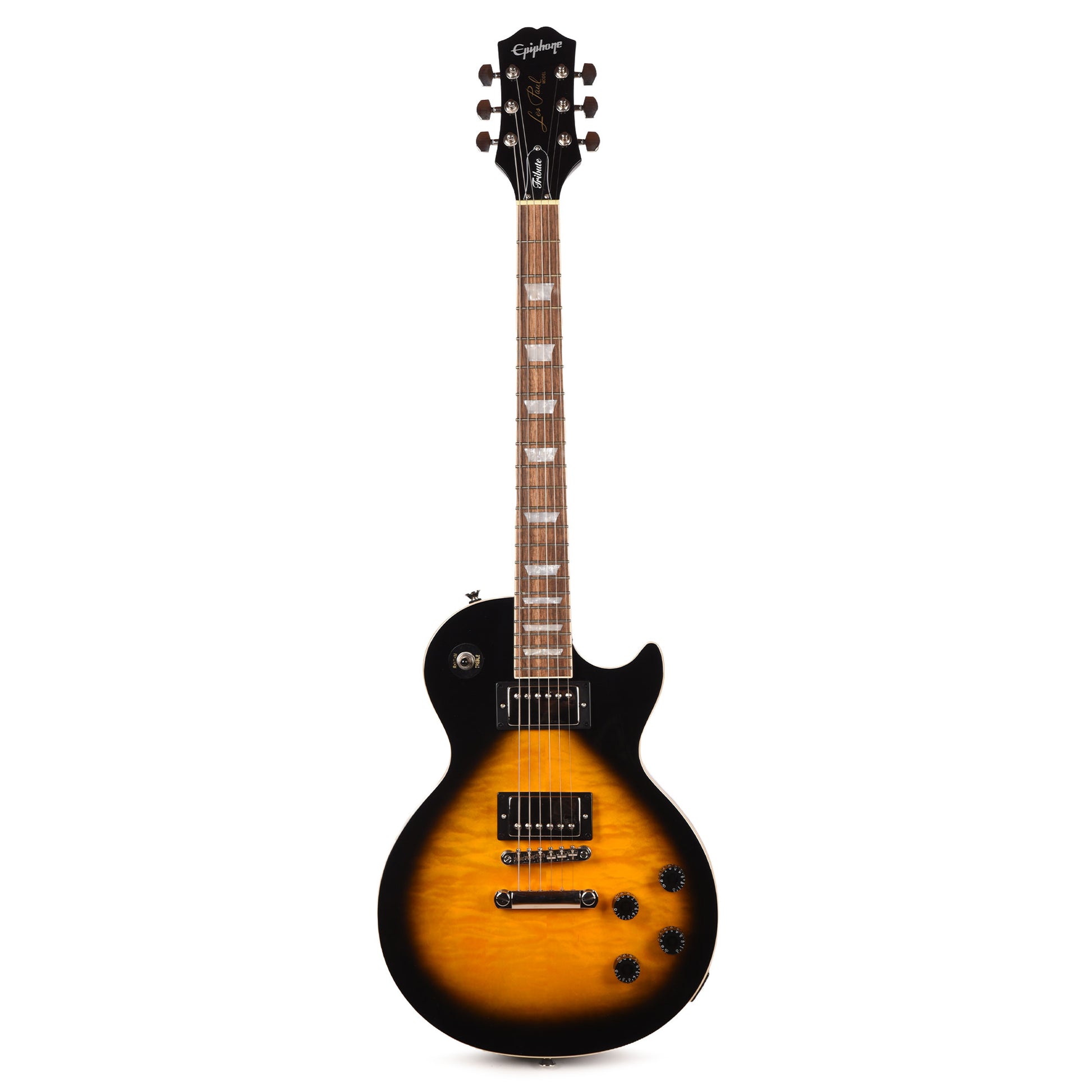 The popular Epiphone Tribute series, a gateway into the world of Epiphone guitars for countless new players, is expanding with the release of the new Epiphone Les Paul Tribute Plus. This affordable yet high-quality guitar is designed for beginner and intermediate-level players who want a quality guitar that won’t hold them back or hinder their learning progress. The Les Paul Tribute Plus features a classic Gibson Les Paul-shaped body made from mahogany. It has a carved and bound top with an AAA flame maple veneer top that looks fantastic. The bolt-on mahogany neck has a fast and easy playing 60s SlimTaper Rounded C profile that makes practice sessions and jamming a joy, and a sculpted heel joint for improved upper fret access. The headstock features the popular 60s Kalamazoo shape and is outfitted with quality die-cast tuning machines, and the bound laurel fretboard is outfitted with 22 medium jumbo frets and adorned with pearloid trapezoid inlays. The Les Paul Tribute Plus is equipped with an Epiphone LockTone™ Tune-O-Matic bridge and LockTone Stop Bar tailpiece for easy adjustment of string height and intonation, and both contribute to this model’s excellent sustain. The Epiphone Les Paul Tribute is powered by a pair of Epiphone humbucker™ pickups, with an Epiphone 650R in the neck position and an Epiphone 700T in the bridge position. Both pickups are equipped with powerful ceramic magnets for strong, full-bodied tone, and under the nickel covers, they have zebra pickup coils. The Epiphone Les Paul Tribute Plus elevates the Tribute series with even more performance and better looks while remaining accessible to players everywhere. It’s a great choice for your first electric guitar or as a step up from a lesser-quality instrument and will serve you well on your musical journey for years to come. An optional Epiphone gig bag or hardshell case is available separately.