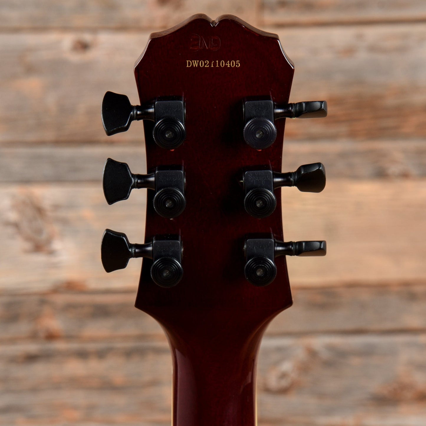 | Neck Details: | Mahogany neck with bound rosewood fingerboard and trapezoid inlays. The original tuner mounting holes have been plugged. There is a factory second stamp above the serial number. |