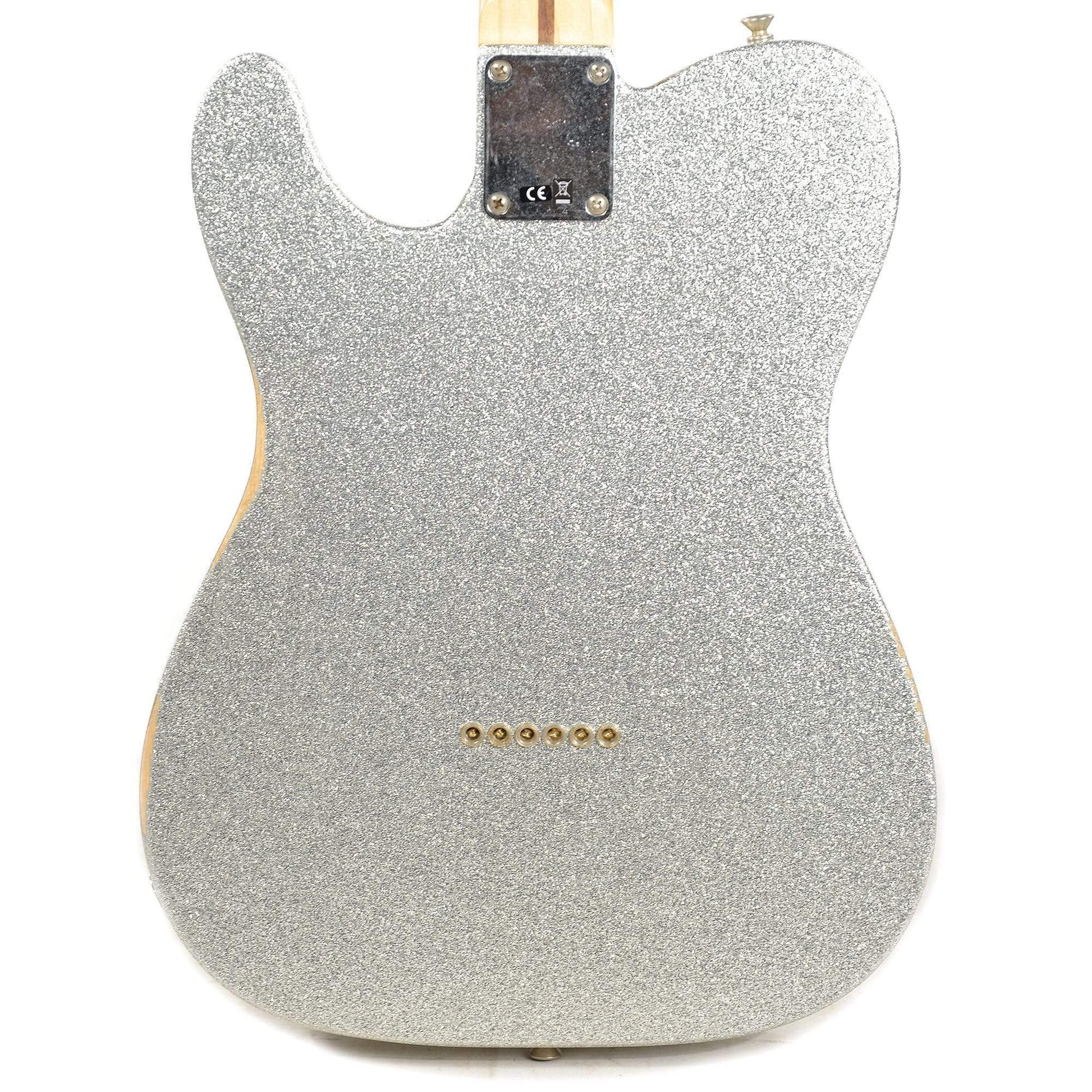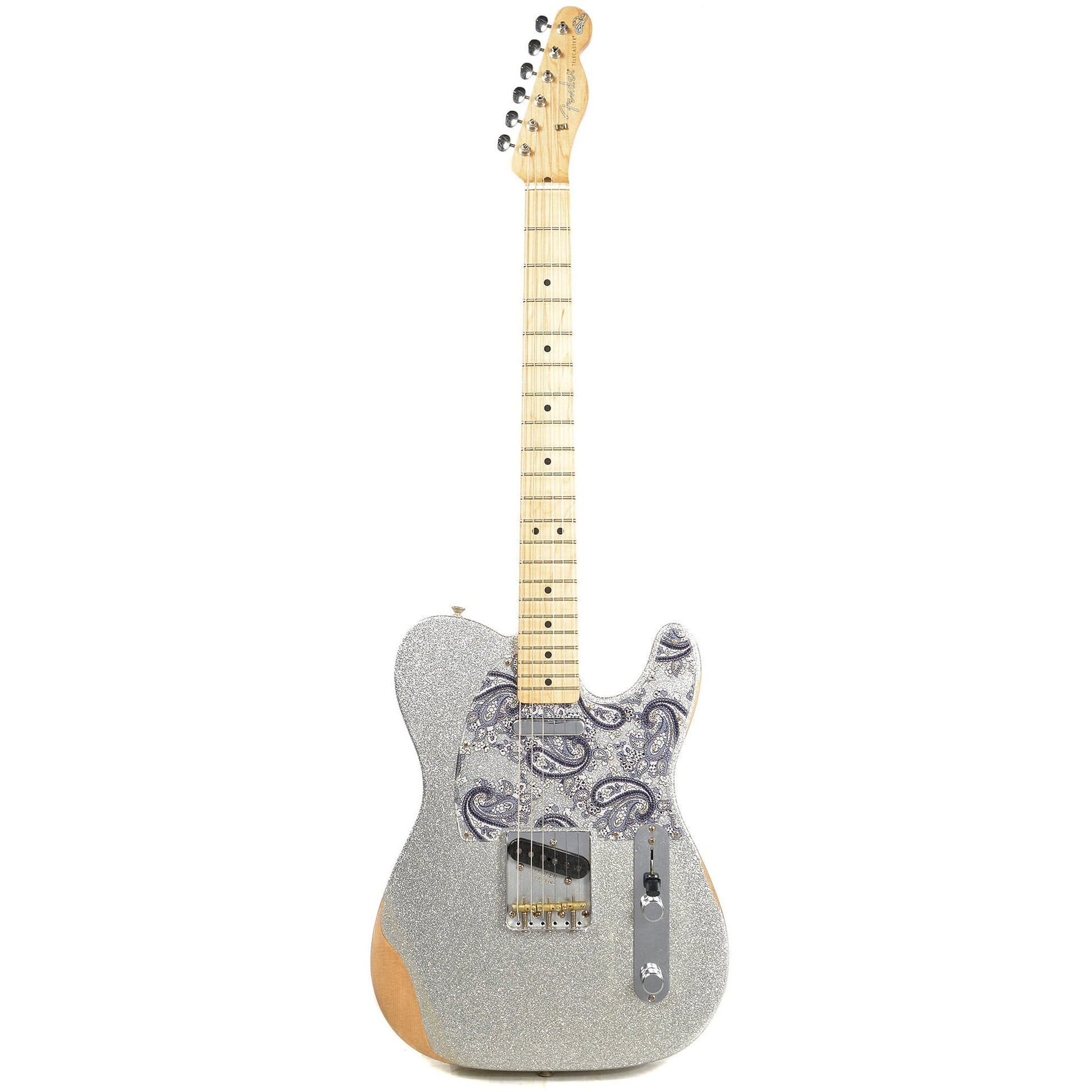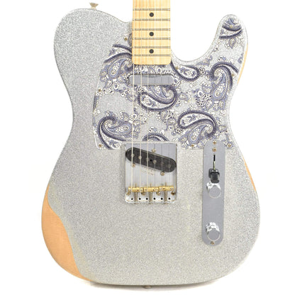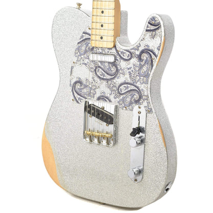 Fender Brad Paisley Road Worn Telecaster MN Silver Sparkle "Like bringing sand to the beach in the best way possible, the Fender Brad Paisley Road Worn Telecaster packs the Tele with even more of the country vibes for which it's known and loved. The paulownia core features a spruce top and back adorned with the Road Worn Silver Sparkle finish and paisley pickguard. The body is strapped with a custom-wound '64 Tele bridge pickup and a Twisted Tele neck pickup for everything from chicken-pickin' to fat, finger-lickin' riffs, and the maple neck has a custom, "enhanced V" profile and 9.5"-radius maple fingerboard for a uniquely playable feel.