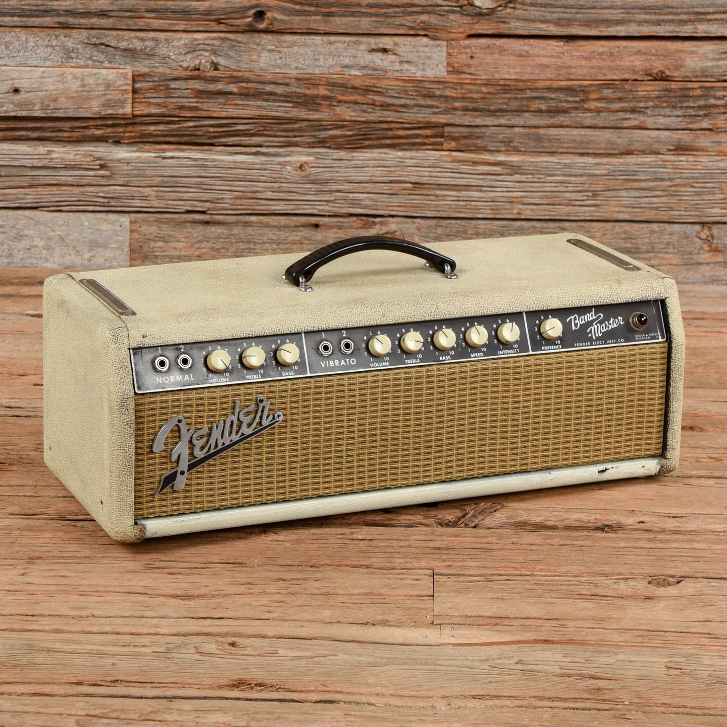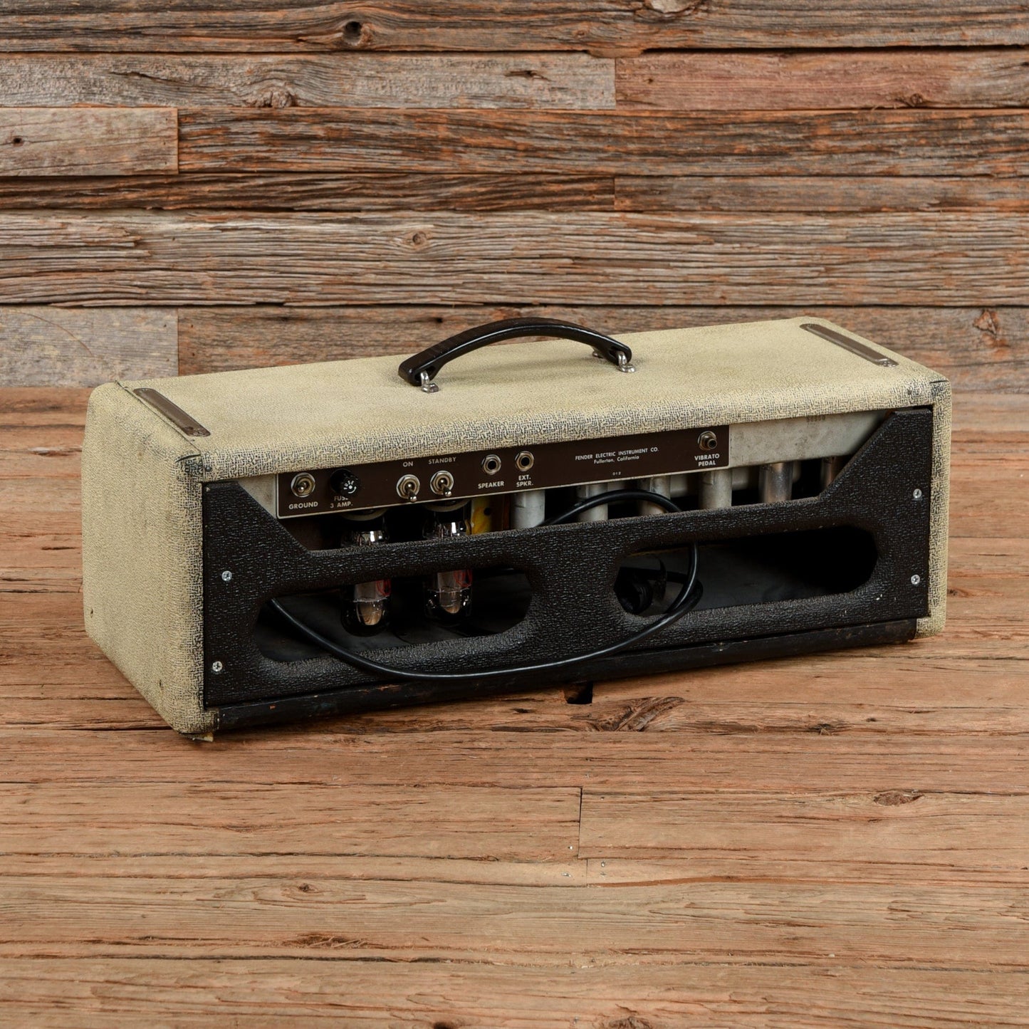 Amp Condition: This vintage amplifier is in good condition with notable wear from age and use.