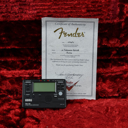 | Tech Notes: | This Telecaster plays well with low action and optimal neck relief. The frets are tall and show light play wear. It has been properly setup and intonated in standard tuning. |