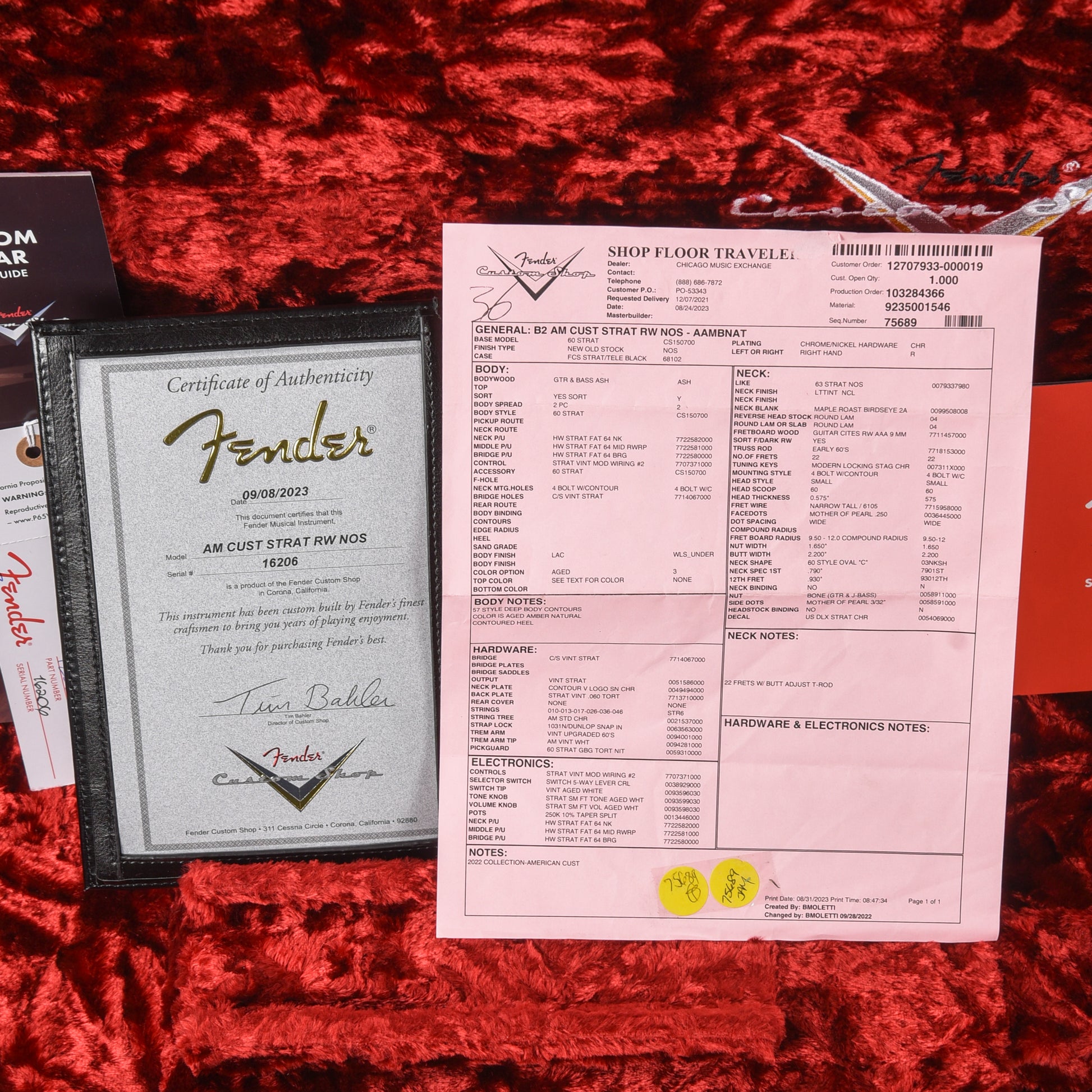 | Tech Notes: | This Stratocaster plays well with low action. The frets are tall and show light wear. |