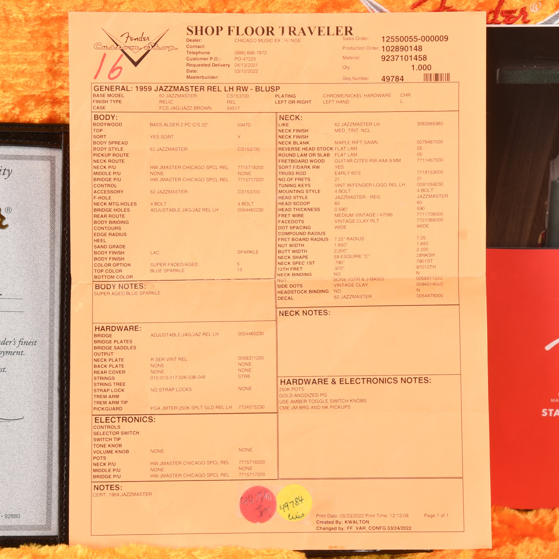 | Electronics: | Original Fender Chicago Special Jazzmaster pickups with traditional Jazzmaster wiring and switching. |