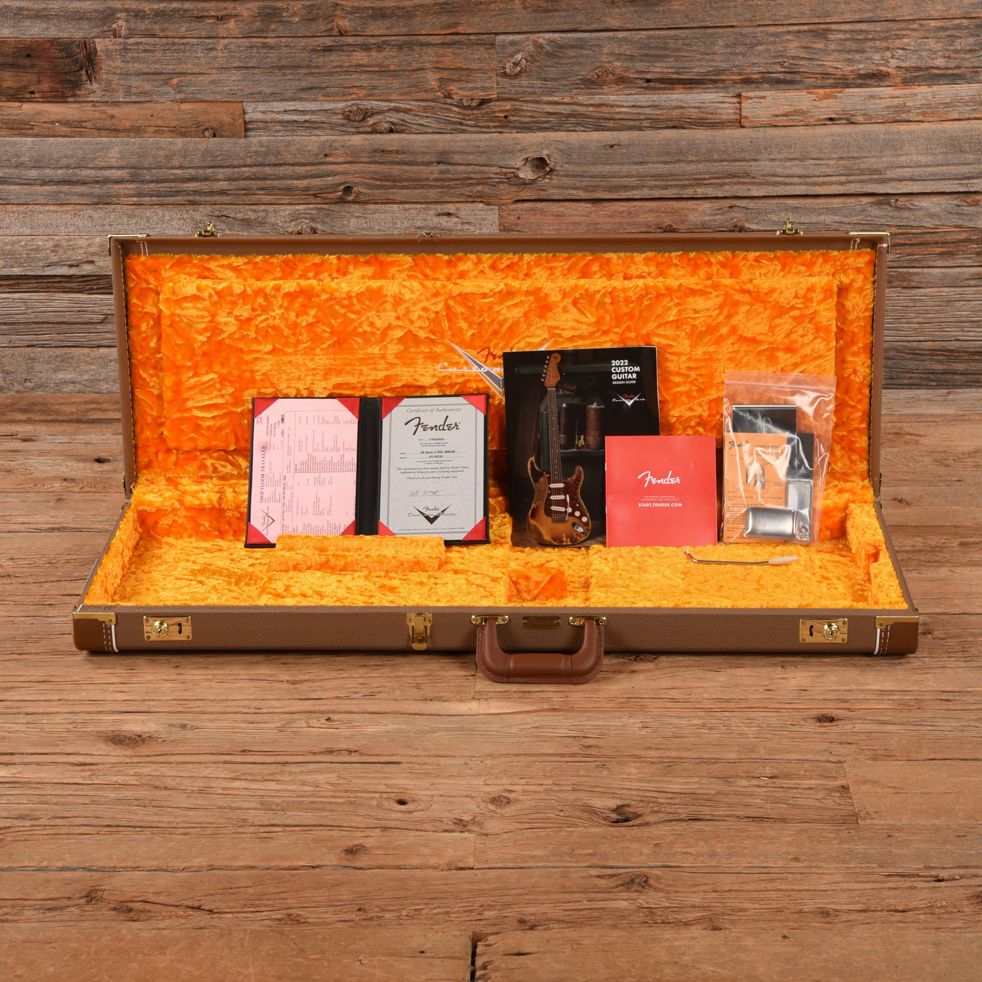 | Tech Notes: | This Stratocaster plays well with low action. The frets are tall and show light wear. |