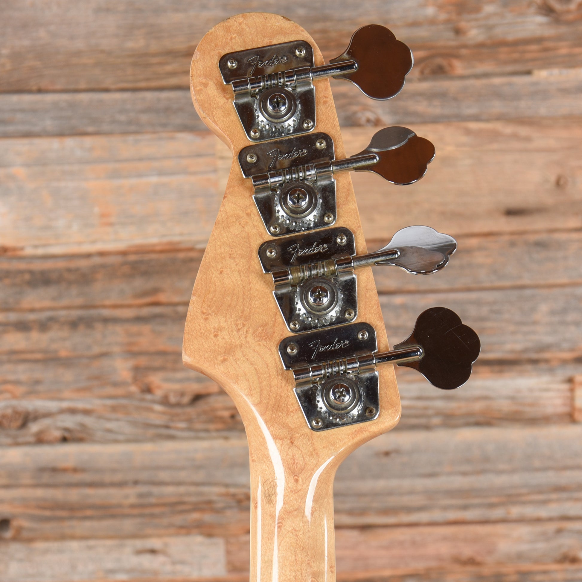 | Cosmetic Condition: | This vintage Jazz Bass is in good cosmetic condition with moderate wear. There is heavy checking present on the body as well as two large dings on the side of the body and on the treble side horn. |
