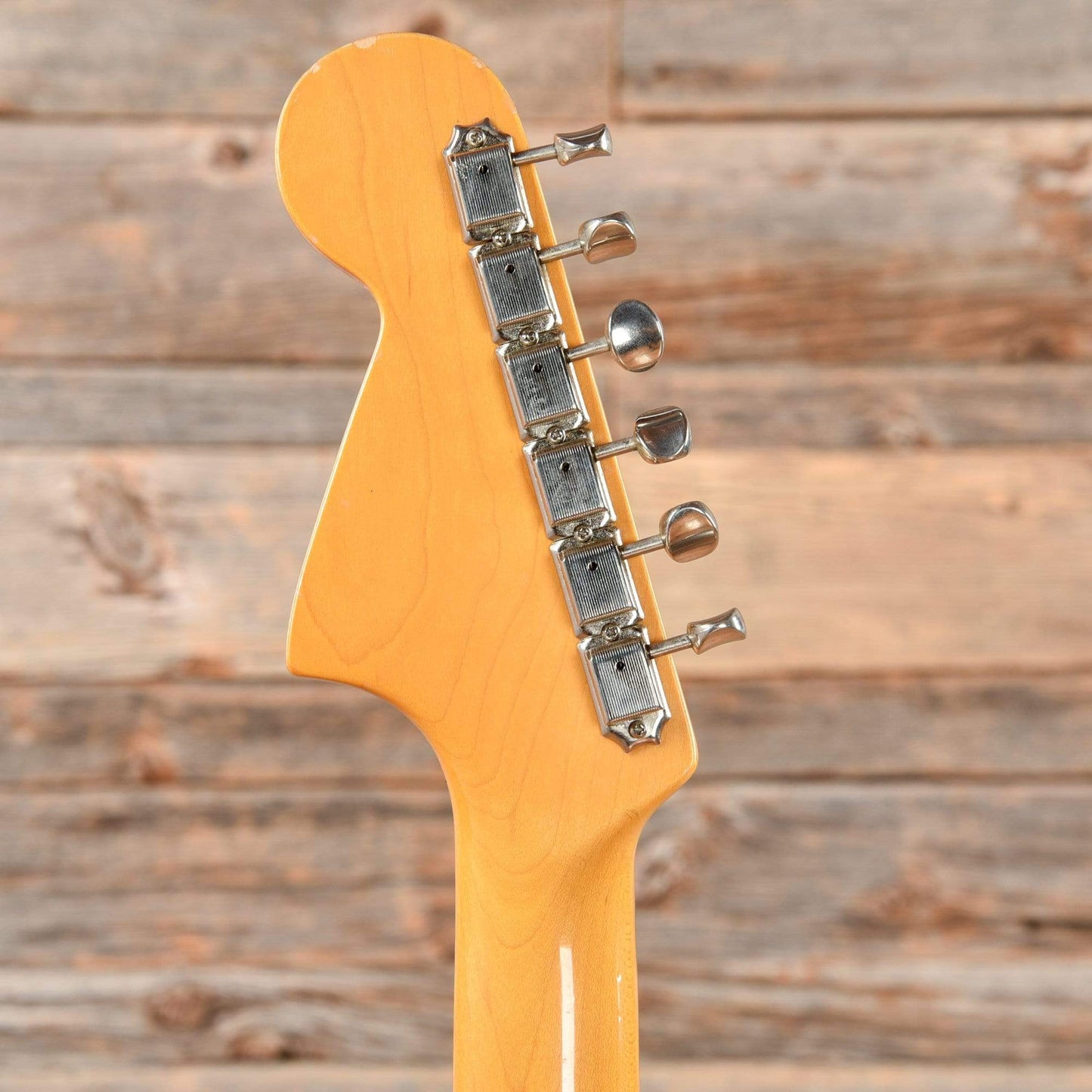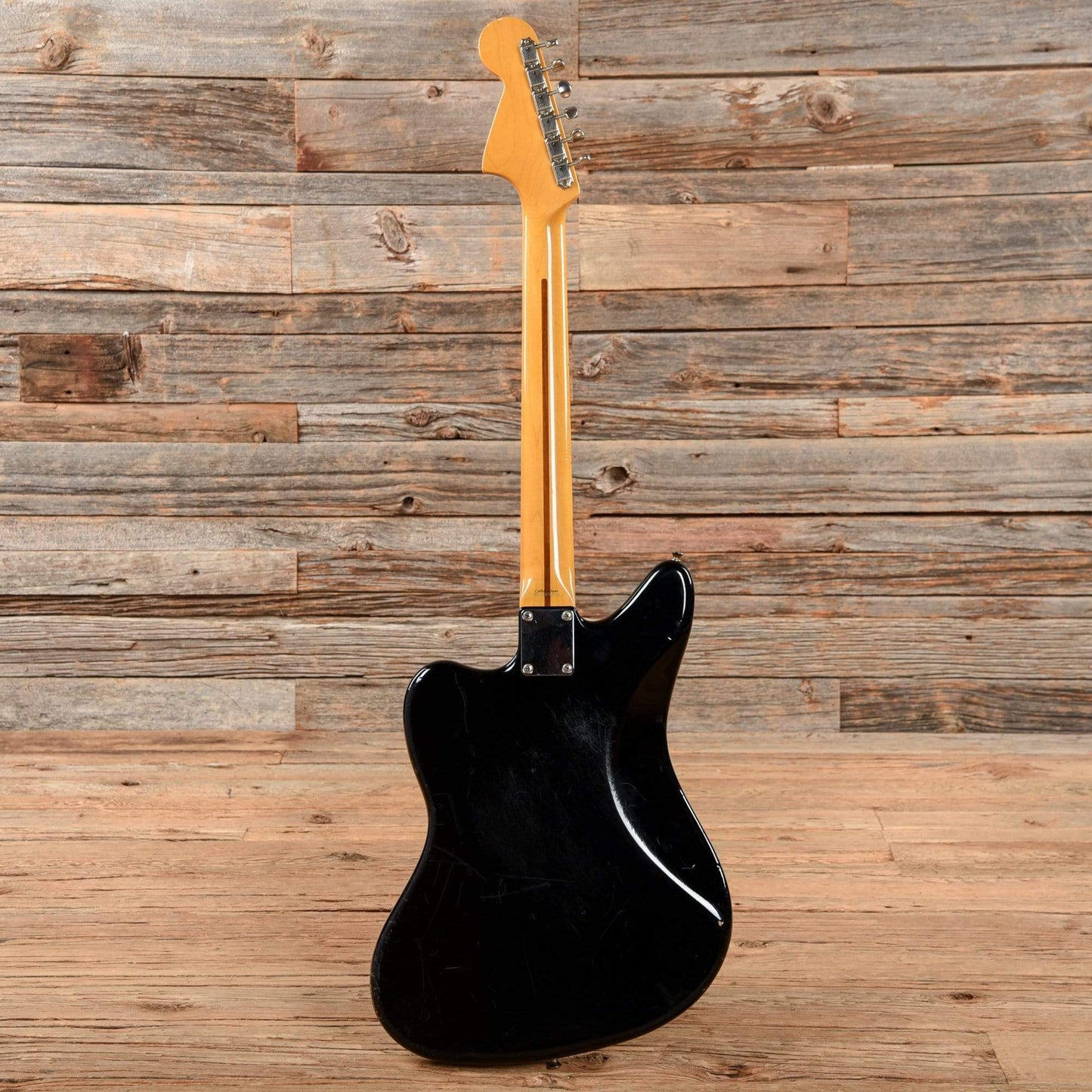 Cosmetic Condition: The guitar shows fairly heavy play wear; the finish is glossy with scratches, dings, and finish chips throughout. The back of the body has heavy buckle rash, and the lower bouts have numerous dings and finish chips. The back of the neck is smooth, with a couple small dings.