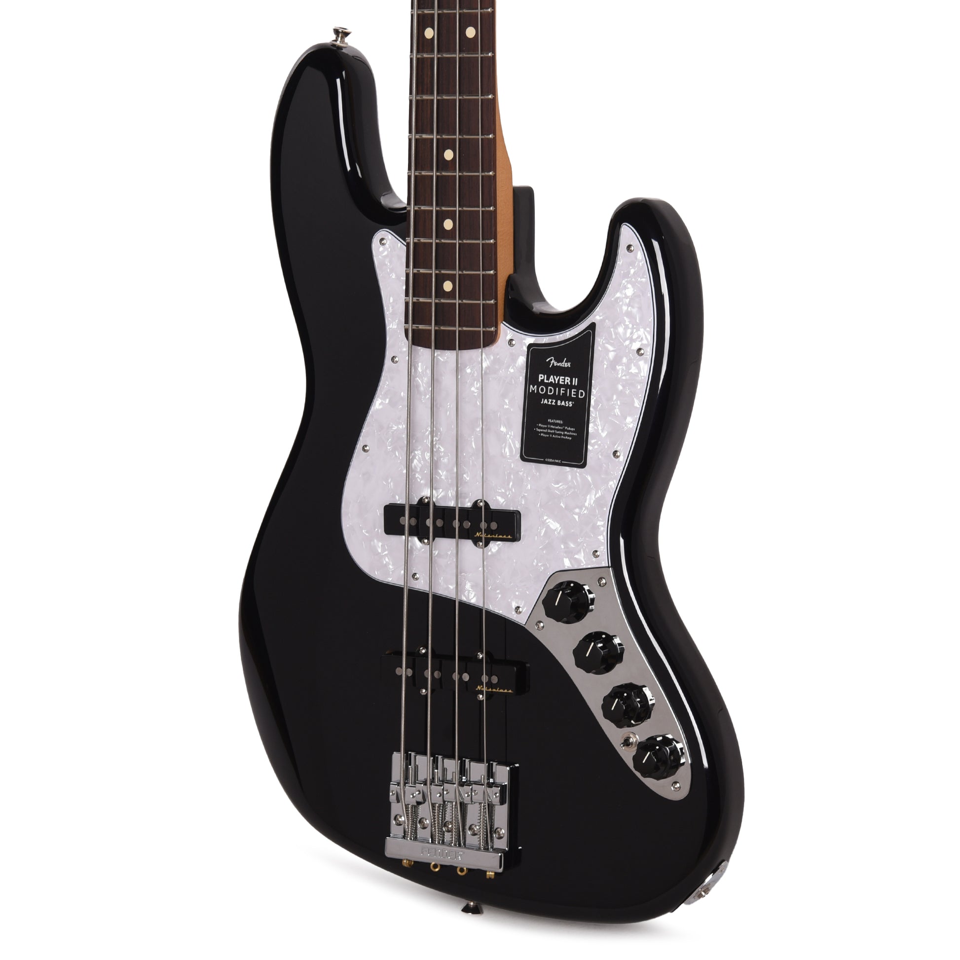 The Player II Modified Active Jazz Bass is a classic bass with the modern player in mind. Everything about the neck is designed for fast and fluid playability, from the Modern “C”-profile with silky satin urethane finish on the back to the comfy 9.5”-radius slab rosewood or 1-piece maple fingerboard with smooth rolled edges and 20 medium jumbo frets. The alder body provides classic Fender punch and is available in a variety of exciting new finishes. The Player II noiseless pickups deliver classic Jazz Bass growl while eliminating unwanted noise while the all-new active preamp with active/passive tone control and EQ section gives players the perfect tool to dial in their favorite tones. The 4-saddle HiMass bridge, tapered-shaft tuners and TUSQ nut all combine to keep tuning incredibly stable for even the most demanding performances.