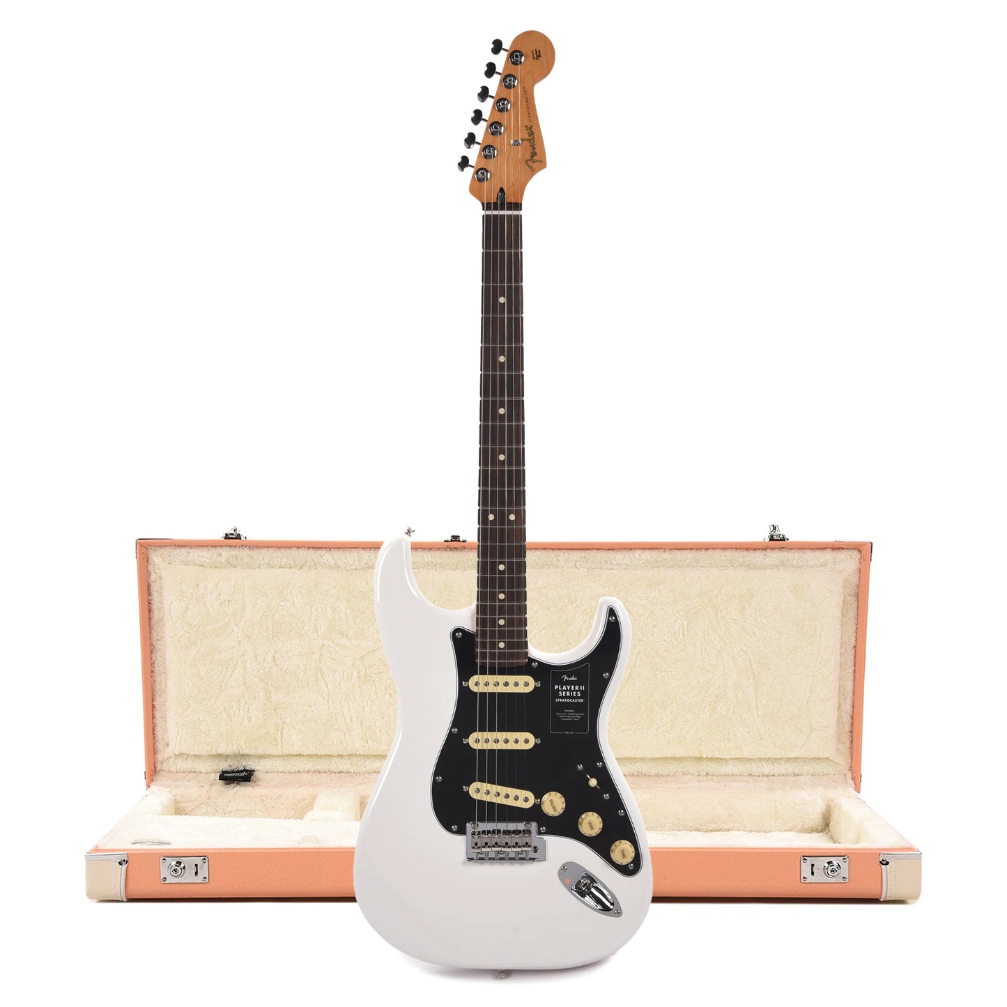Fender Player II Stratocaster RW Polar White and Pacific Peach Hardshell Case Bundle