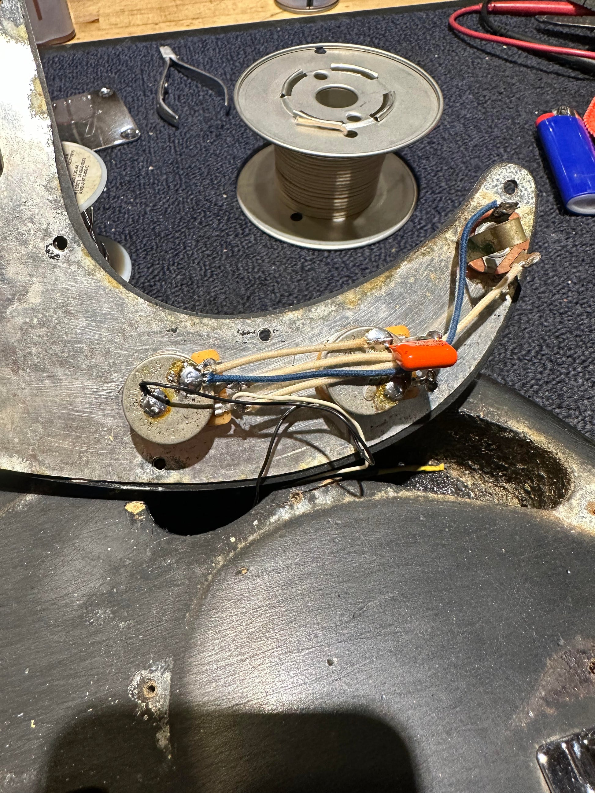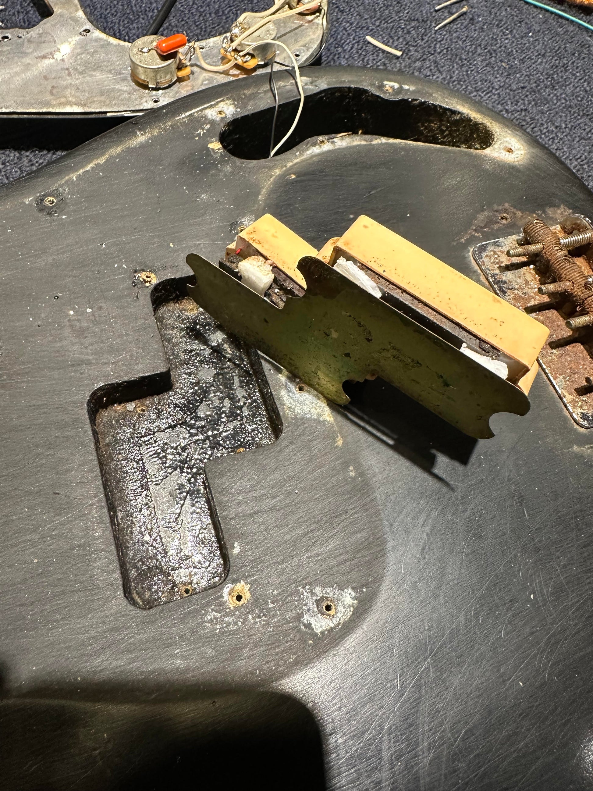 | Electronics: | Non-original pots, Dimarzio pickup, output jack, and wiring. |