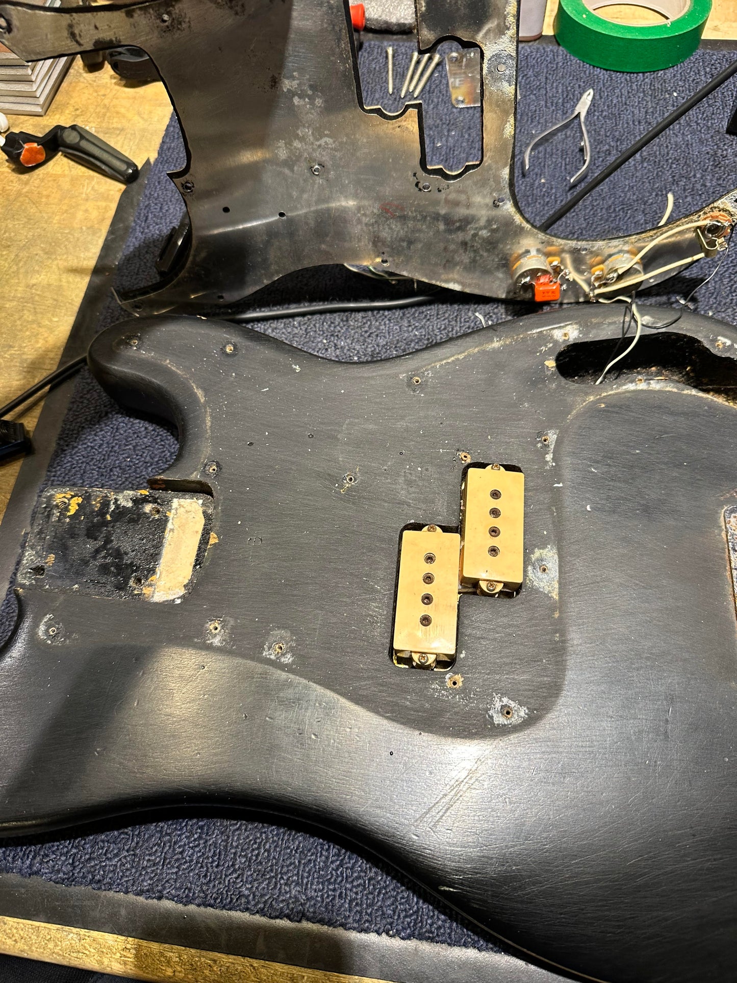 | Cosmetic Condition: | This vintage P-Bass is in good cosmetic condition. There is heavy wear throughout the bass as well as heavy scratches, dings, dents, and finish wear. |