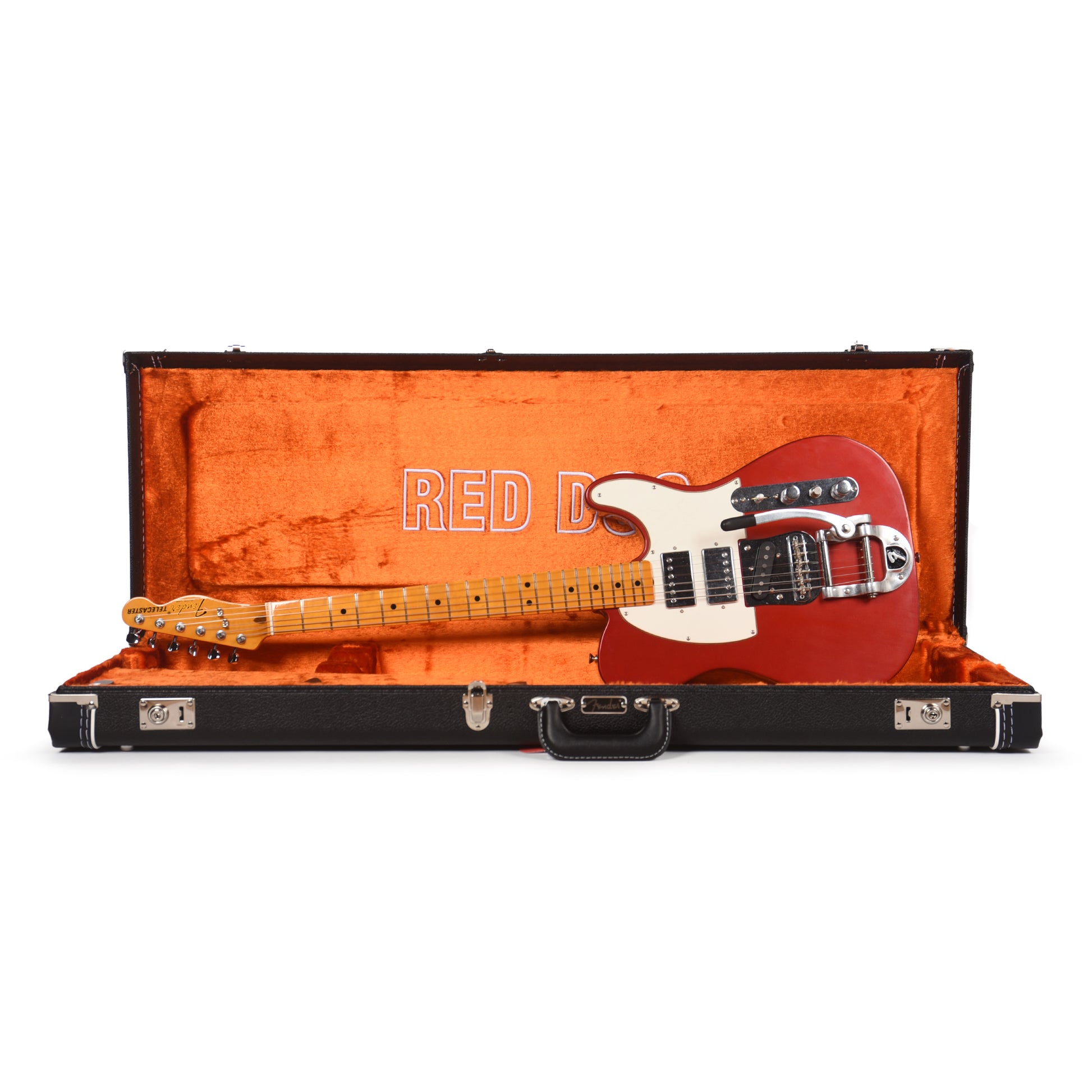 The Stories Collection Mike Campbell Red Dog Telecaster® features an Heirloom™ nitrocellulose lacquer “Red Dog Red” finish, 1-piece maple neck with 7.25” radius fingerboard and 21 vintage-style frets as well as an onboard “Destruct” boost circuit. The custom Mike Campbell Red Dog pickup set features two vintage-style humbuckers and a single-coil telecaster bridge pickup, Bigsby B5F tremolo and a custom Red Dog neck plate. Custom accessories include a vintage-style case, strap, picks and certificate of authenticity.