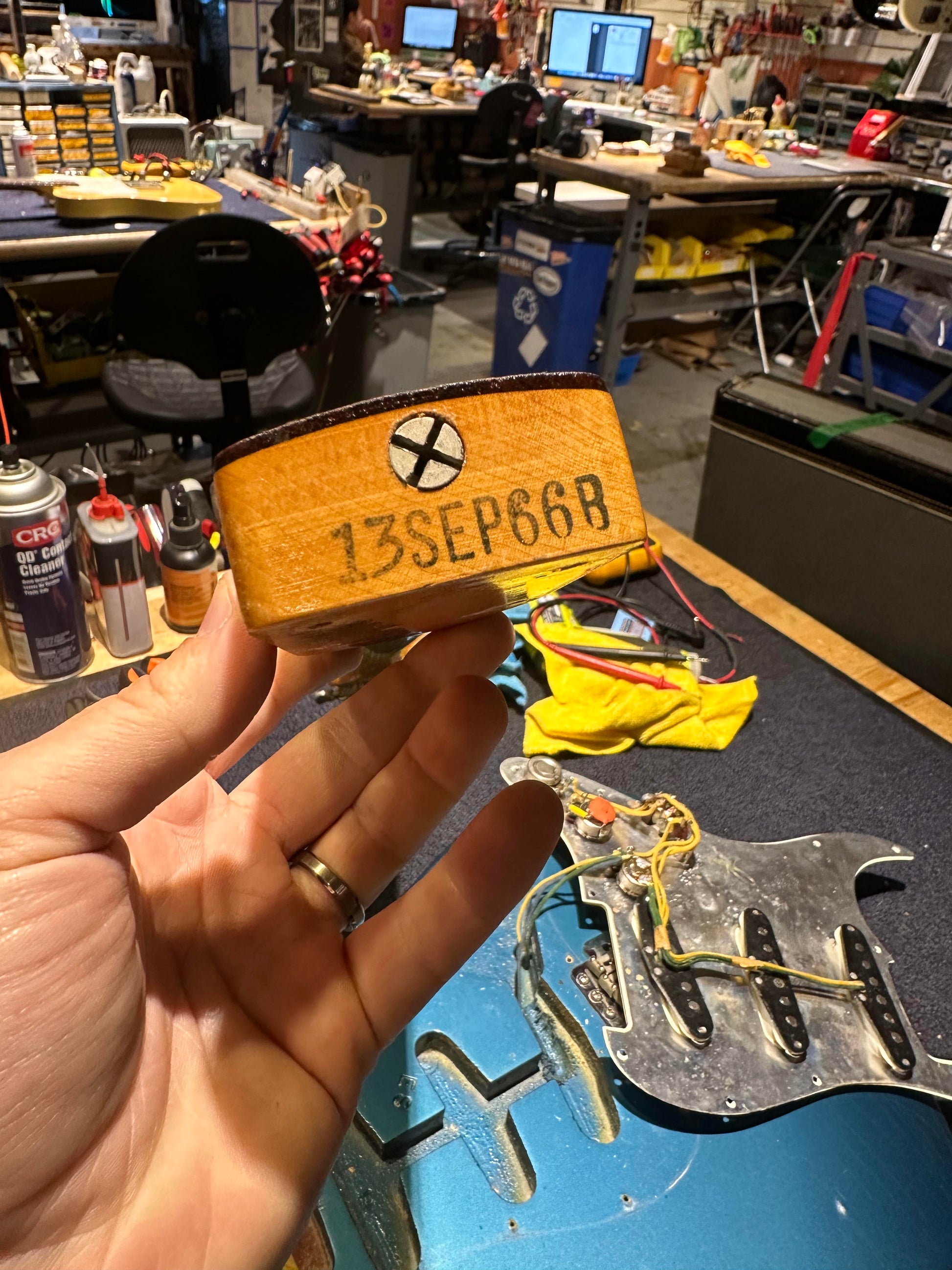 | Electronics: | Original Fender pickups with a three-position switch, a master volume pot, and two tone pots. The pots are original and display 1966 pot codes. |