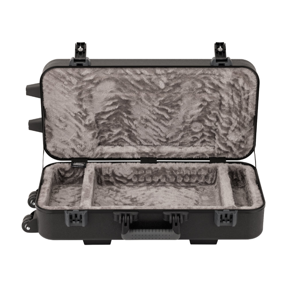 Fender’s Tone Master Pro Case is a stylish and affordable way to keep your Tone Master Pro safe while traveling. Its rock-solid outer layer is constructed of a tough ABS outer shell that protects against impacts on the road and a telescoping handle with rugged roller wheels allow for easy transport. The interior features a black tricot fabric with two dividers to accommodate expression pedals or other gear.