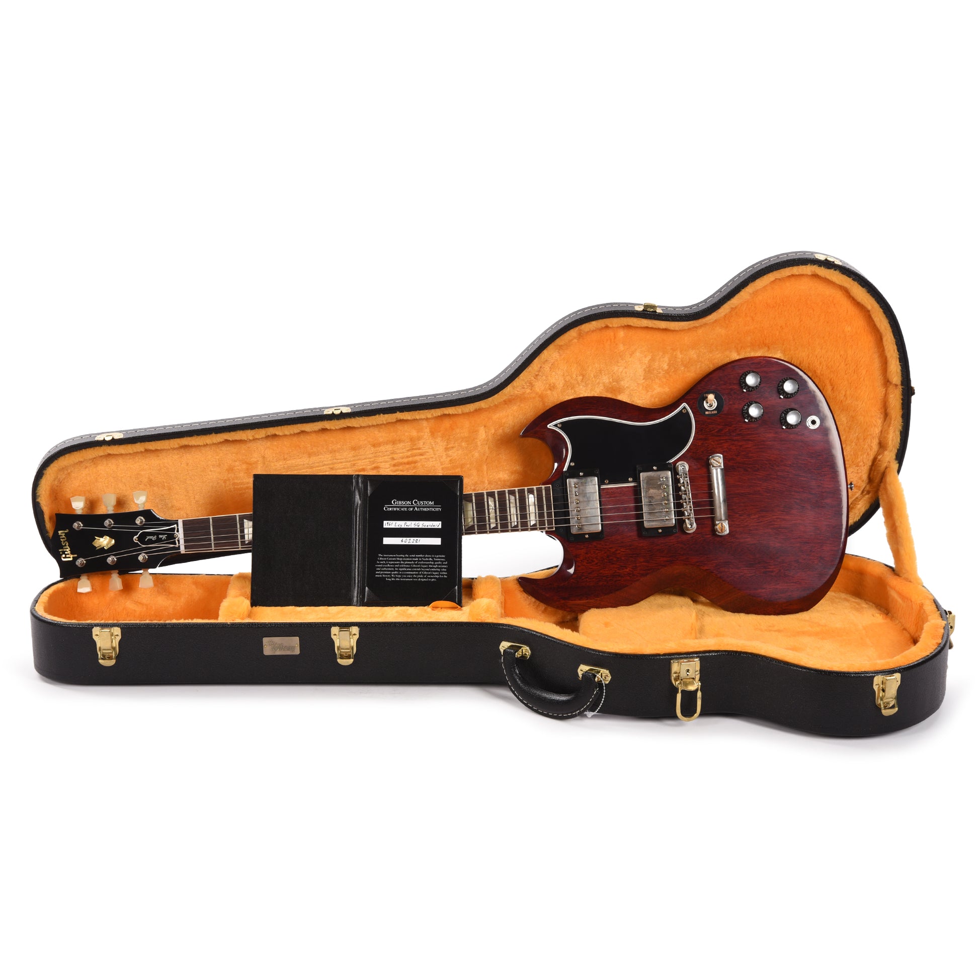 A 1960s SG has been the favorite of some of the most iconic guitarists ever...Angus Young, Tony Iommi, Robby Krieger, George Harrison, Dickey Betts, Gary Rossington, and Eric Clapton, to name a few. The SG's devilish points and curves, blistering humbucker tone and fast-playing neck help to make it one of the most coveted and revered 1960s Gibson models. This Custom Shop Historic Reissue SG continues the legendary magic of the originals with all solid woods, historic hide-glue construction methods, the finest vintage replica parts and materials available and the instantly-recognizable, powerful tone of pure rock 'n roll.