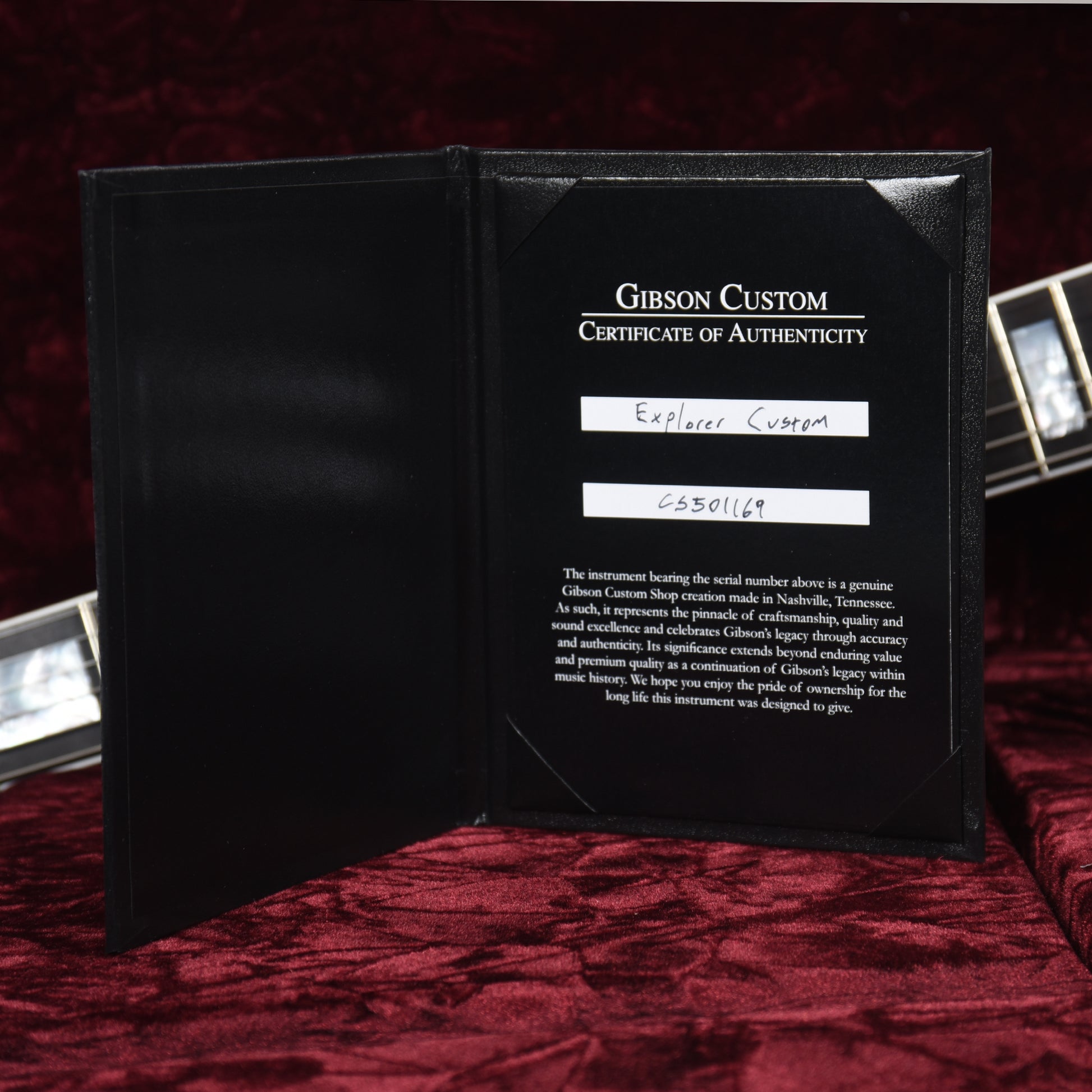 The classic Gibson Explorer dives into new aesthetic and sonic territory with this Custom-appointed version, replete with multi-ply binding, pearl appointments, gold hardware, and a solid Ebony fingerboard. It's an electrifying, upscale look which brings with it Gibson's signature playability, instantly-recognizable voice and Gibson Custom's unwavering commitment to building the best guitars on the planet.