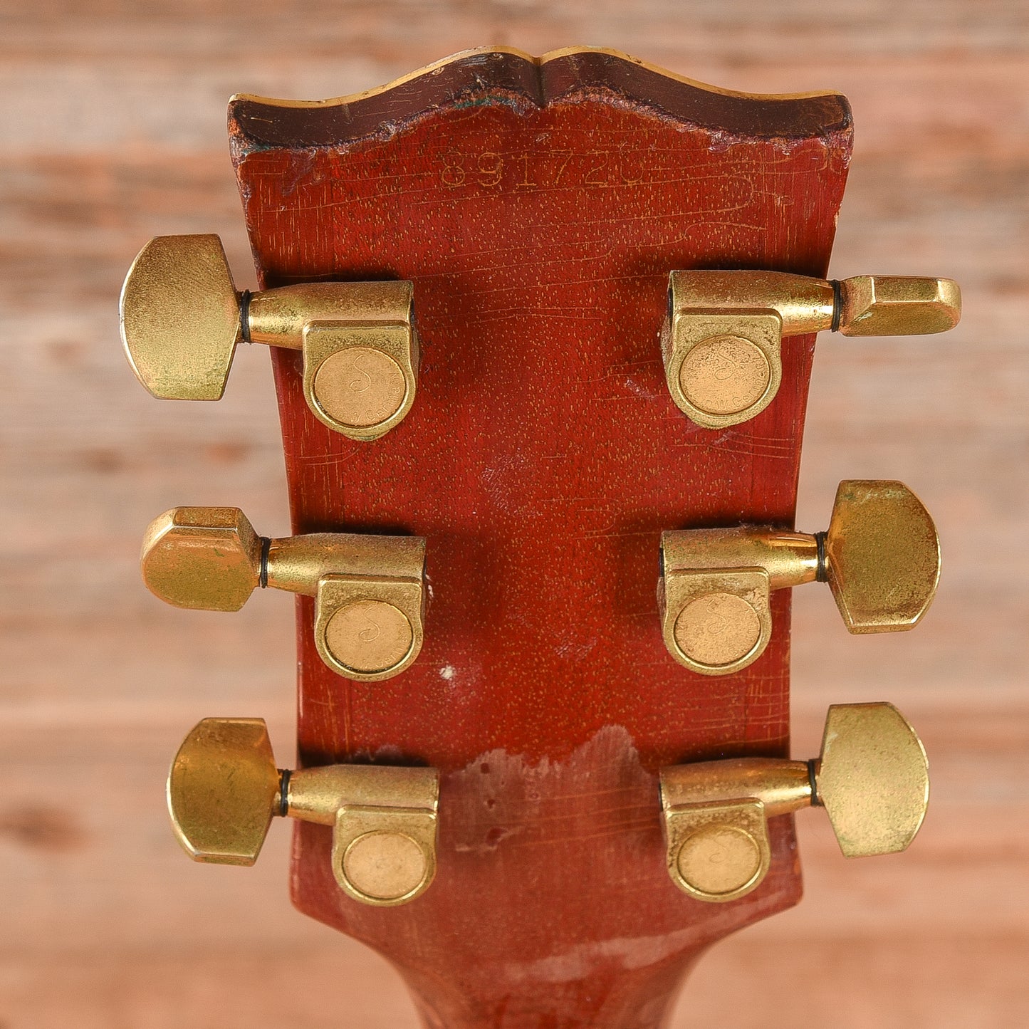 | Modifications/Repairs: | -Headstock repair. This repair has been done properly and is stable. -The finish has been touched up, sanded, and buffed where the headstock repair was done. -The back of the body has been over sprayed. -Non-original pots. -The electronics have been rewired and has been converted to mono. -Vari-tone rotary switch has been removed and a standard potentiometer has been installed in it's place. It is not wired into the harness and it purely cosmetic. -Non-original Schaller tuners. -Non-original nut. |