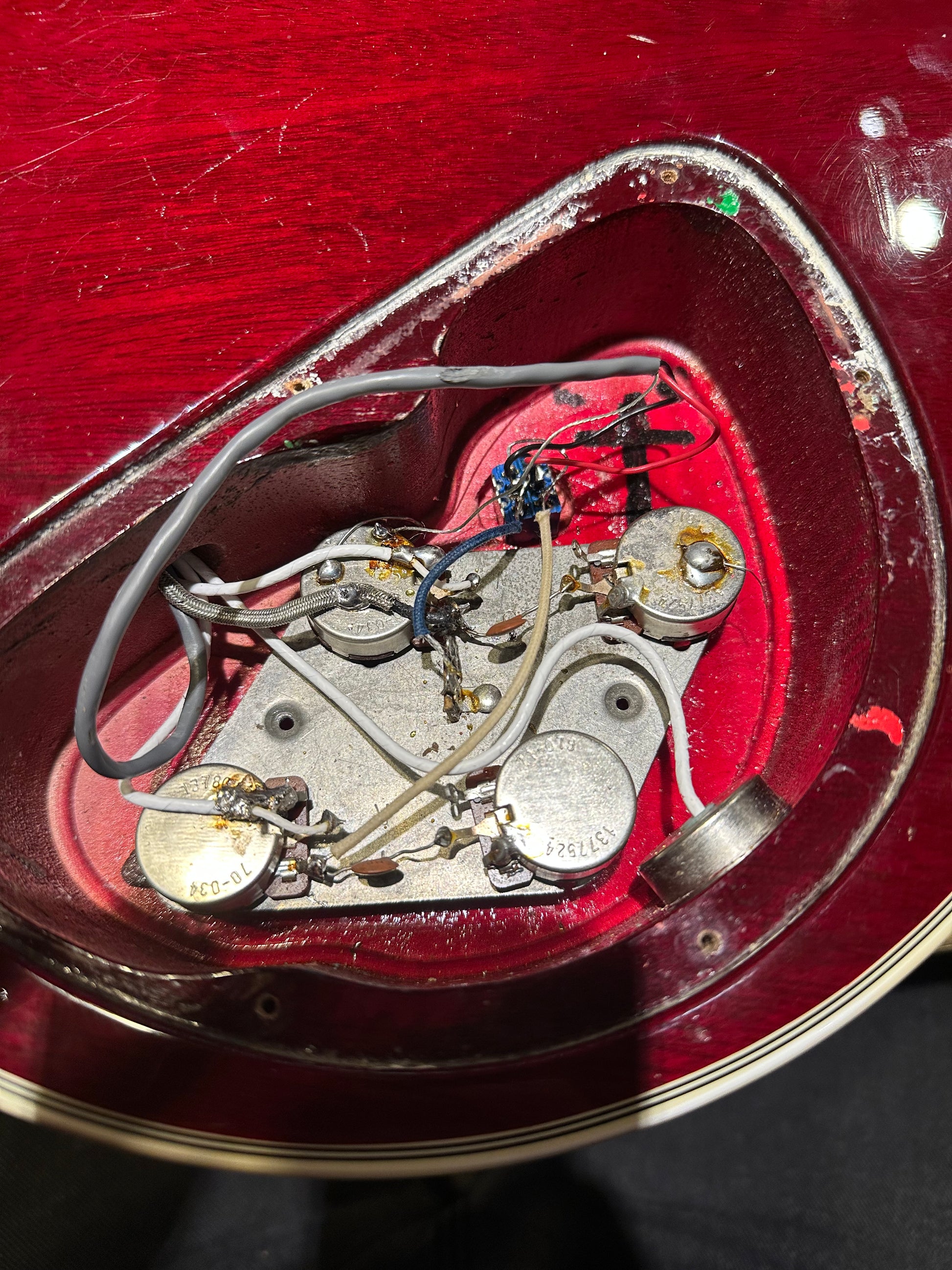 | Electronics: | Non-original Gibson 57 Classic neck pickup and unbranded bridge pickup. The wiring has been replaced while the pots are original with codes dating to 1979. |