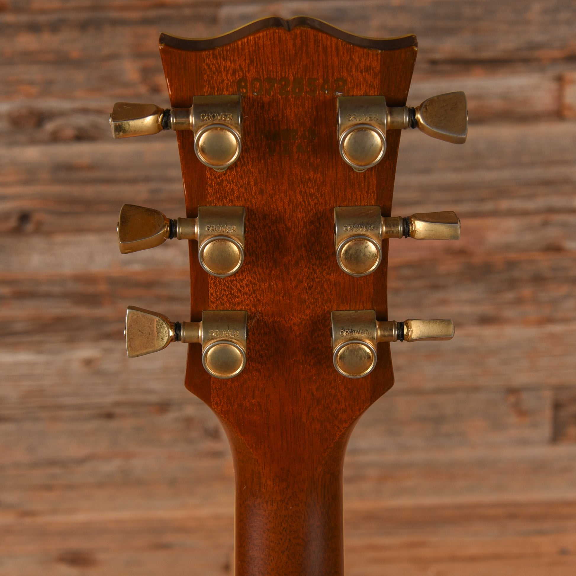 | Cosmetic Condition: | This used Gibson guitar is in good condition. The finish is glossy with some light finish scratching and a handful of small, scattered dings. The metal hardware is lightly tarnished with age. Finish wear is visible around the strap button on the lower bout. |