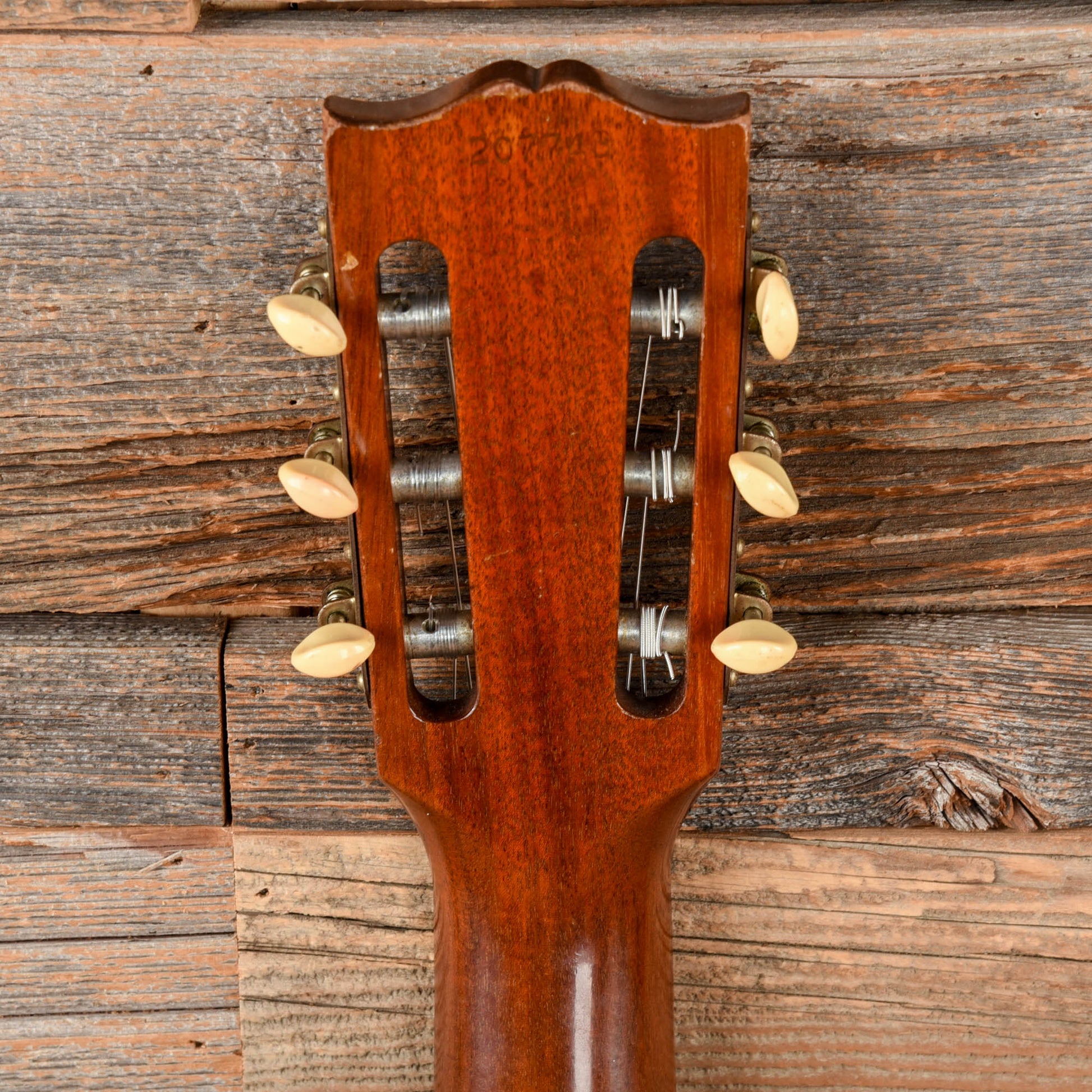 | Tech Notes: | The guitar plays well with low action and optimal neck relief. The wide frets are low with mild play wear. This Lyon & Healy Anniversary model dates to 1964. |