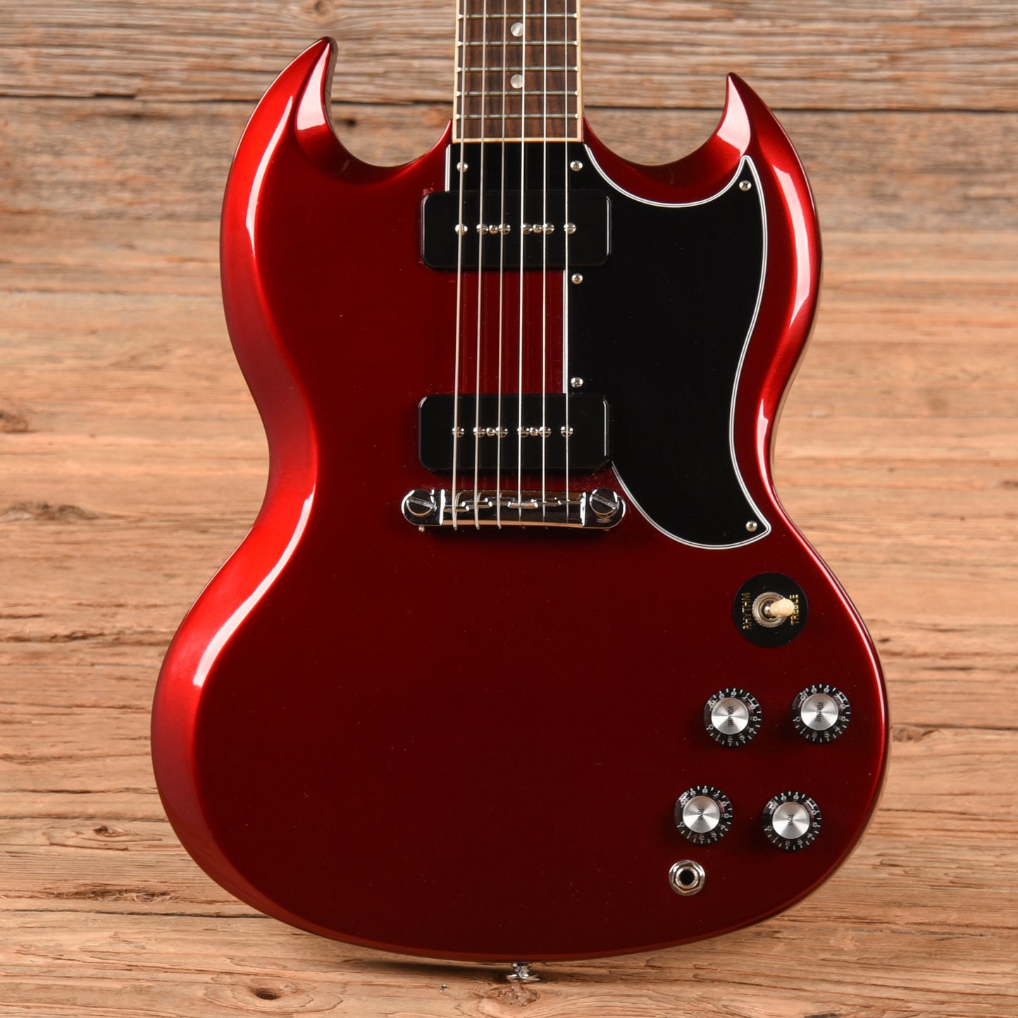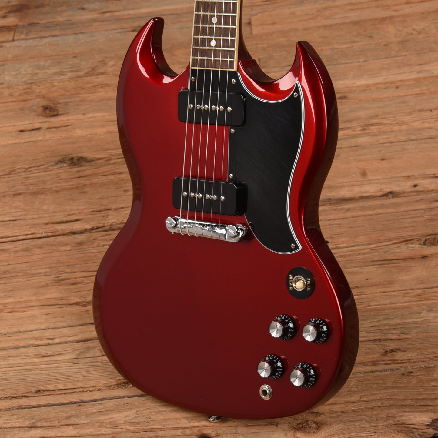 | Electronics: | Original P90 pickups and electronics, with 3-way toggle switch and volume/tone controls for each pickup. |