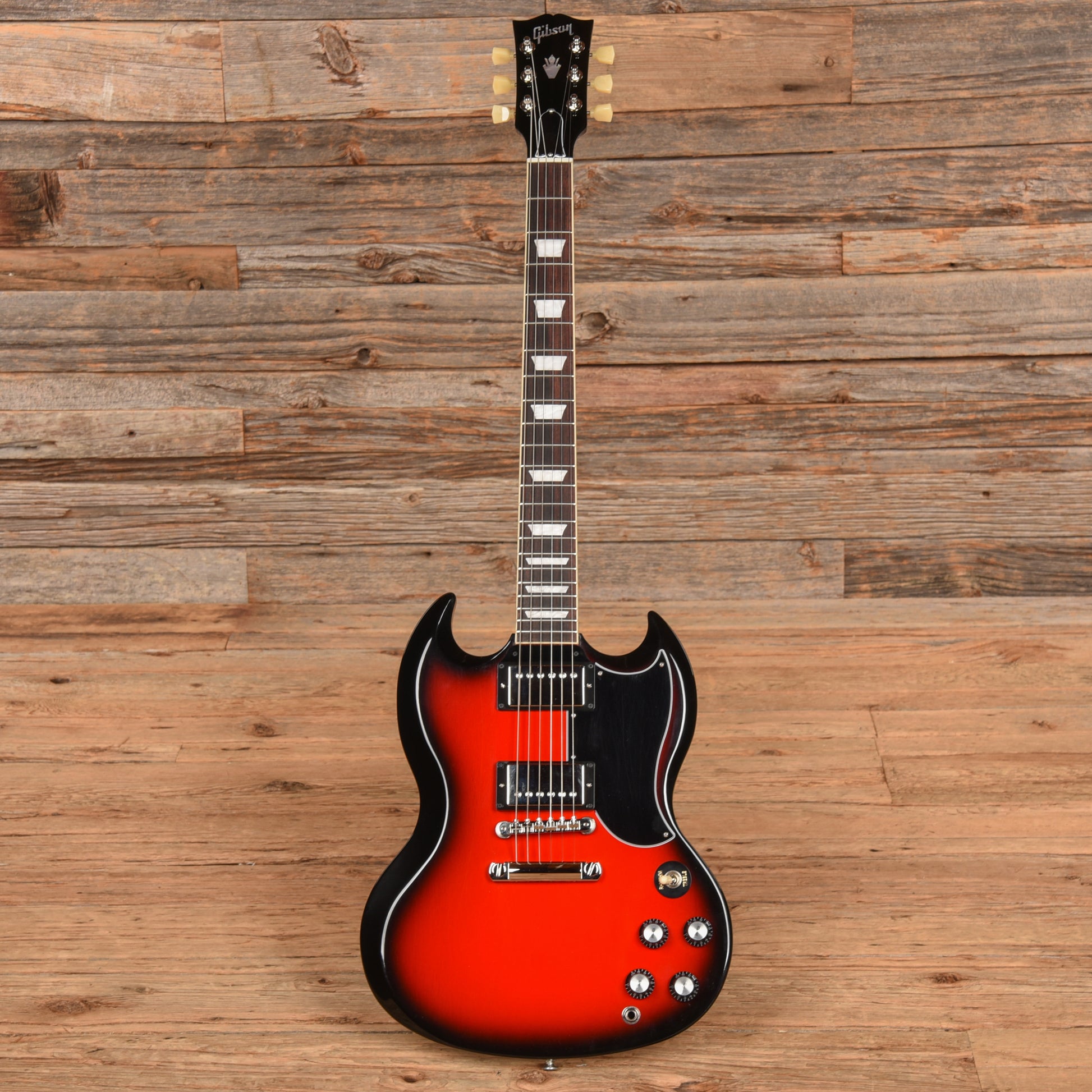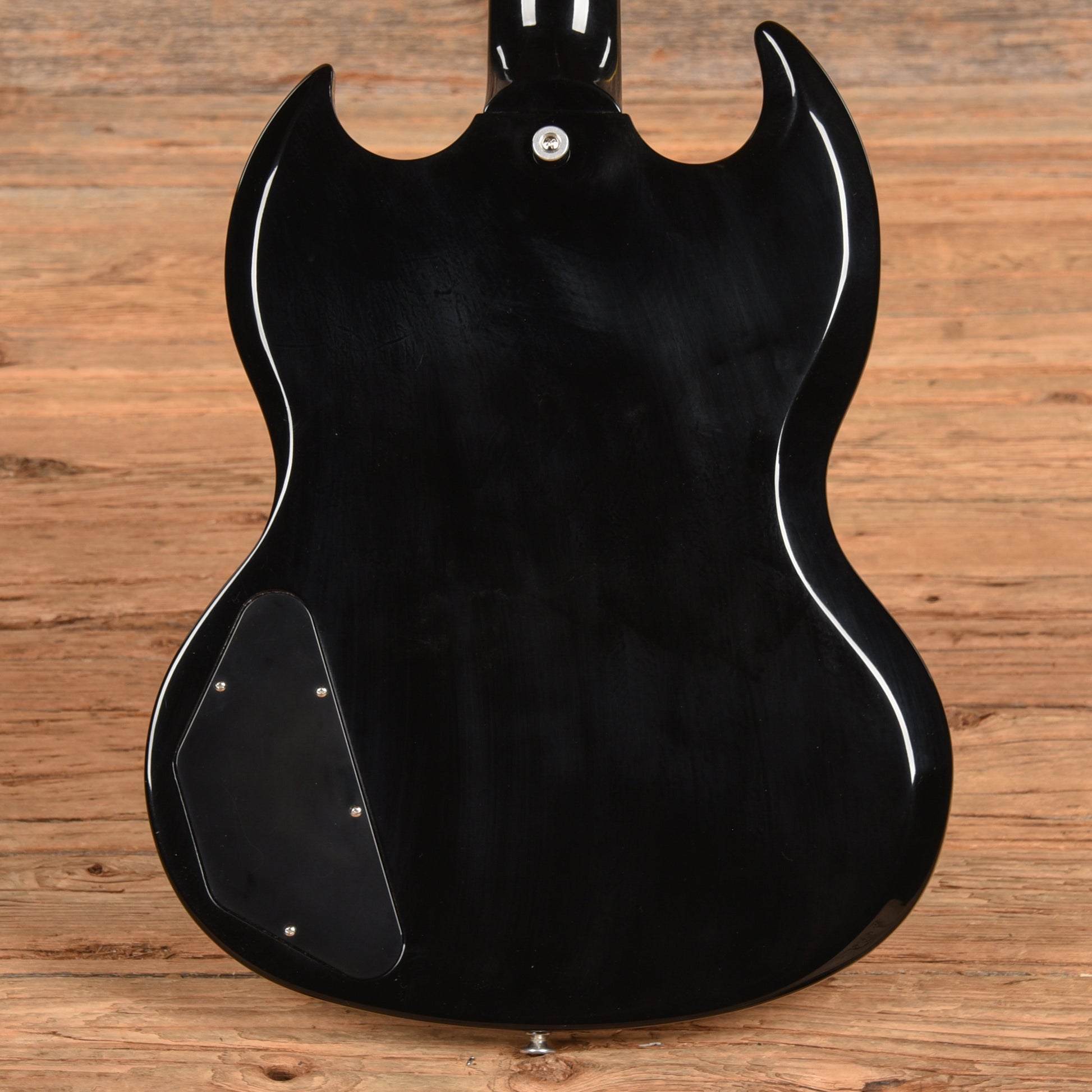 | Tech Notes: | This SG plays well with low action. The frets are tall and show light wear. There are minor scratches and moderate swirling throughout. |