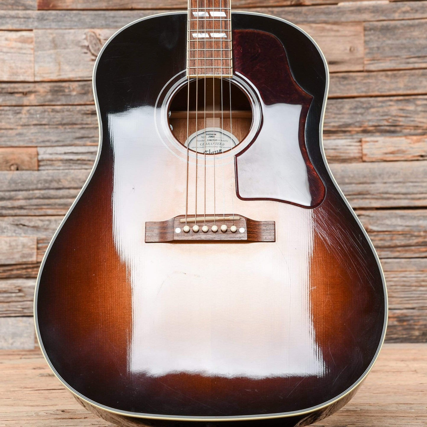 | Cosmetic Condition: | The guitar has moderate play wear. The finish is glossy with light scuffs and scratches throughout. Then back of the body has light buckle rash. There is a chip in the finish on the back of the headstock. |