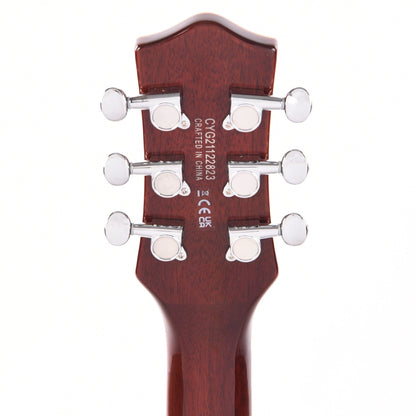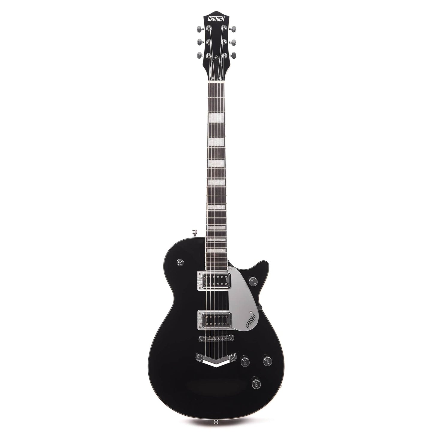 The all-new G5220 Electromatic Jet™ BT Single-Cut with "V" Stoptail delivers Broad'Tron power with classic Jet clarity. At the heart of each Electromatic Jet BT is a chambered mahogany body with maple top that produces a rich, present mid-range that accentuates big lows and shimmering highs. A pair of Black Top Broad'Tron pickups drive the chambered mahogany body with maple top through thick, aggressive overdrive while maintaining astounding definition and note balance suitable for the most pristine clean tone. The Electromatic Jet BT is equipped with essential features that give you complete tonal control. The combination of individual pickup volume controls, master tone and master volume with treble bleed circuit provides intuitive global control over your pickup and tone settings.