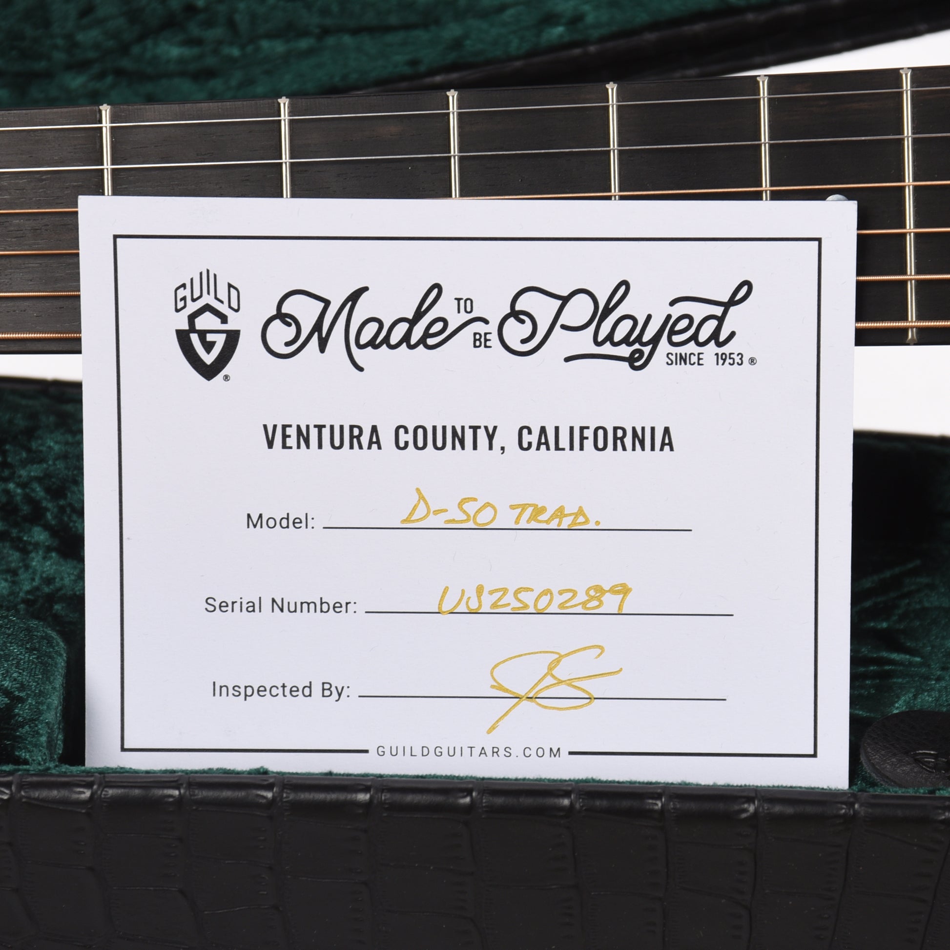 The Guild Limited Edition D-50 Traditional Herringbone blends vintage-inspired craftsmanship with modern precision, featuring a solid Sitka spruce top and Indian rosewood back and sides for rich, resonant tone. Elegant herringbone purfling and a nitrocellulose finish enhance its classic aesthetic, making it a standout choice for players seeking timeless sound and style.