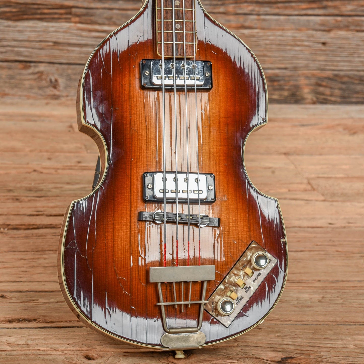 | Hardware: | Original Hofner tuners, bridge, and tail-piece. The nut is not original. |