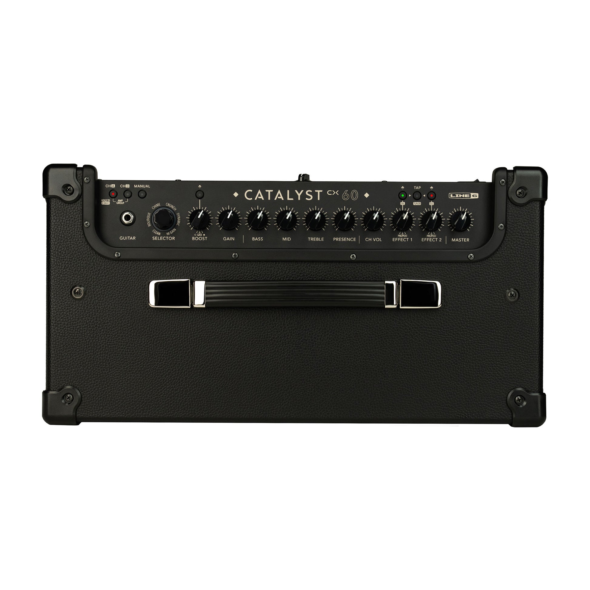 Catalyst® CX 100 is a dual-channel 1x12 combo amplifier that performs like a traditional guitar amp—while providing the increased versatility of a modern amp. Occupying the middle position in the Catalyst CX family of guitar amplifiers—which range from 200 to 60 watts—the 100-watt Catalyst CX 100 is powerful enough for most gigs, while also sporting studio-friendly features such as a USB audio interface. The sturdily constructed Catalyst CX 100 amplifier offers 12 Amp Voicings—ranging from pristine clean to modern high-gain—derived from the Helix® amp and effects processor. Each Amp Voicing is matched with a custom Boost type, and there are also 24 HX®-quality effects spanning four effects categories. Additional features include a Tap/Tuner button, an XLR line output, an effects loop, a Power Amp input for using the Catalyst CX as a powered speaker, MIDI functionality, a 2-channel USB recording interface, and power output options. The free Catalyst Edit app for desktop and mobile devices provides deep editing capabilities. Add an optional LFS2 footswitch for even more flexibility, and an optional cover to protect your combo.