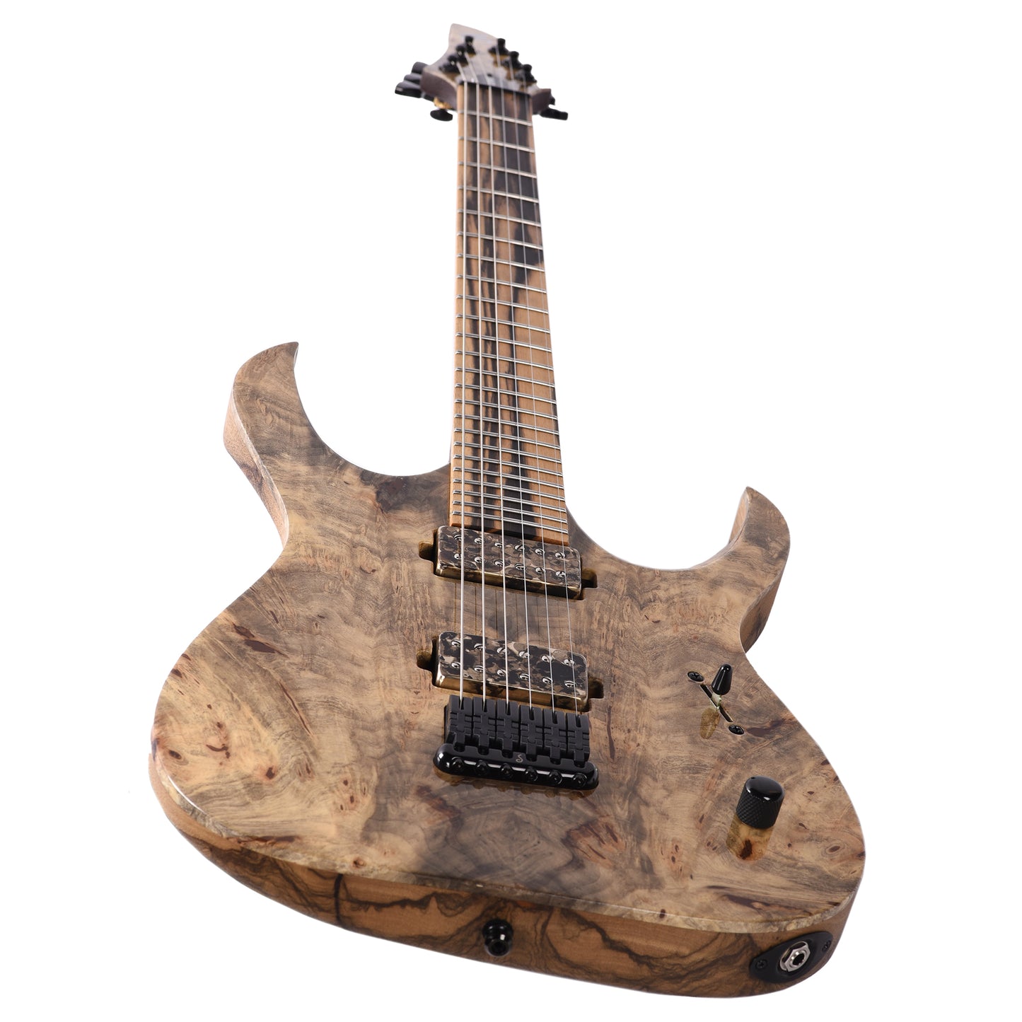 This Duvell Elite 6 Guitar features a Black Limba body with an Maple top and Bare Knuckle Juggernaut pickups.