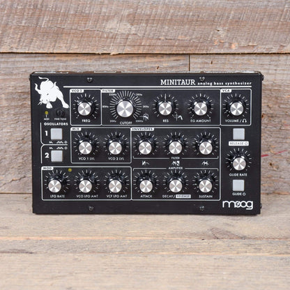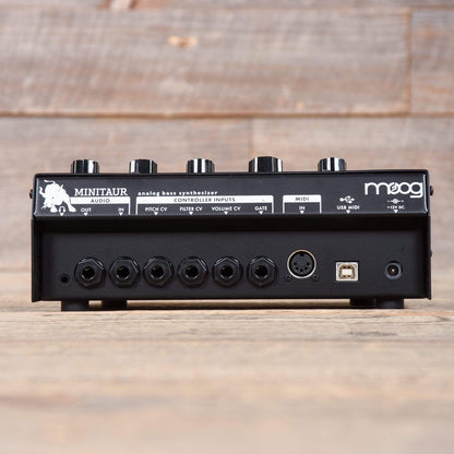Minitaur is a powerful, compact Analog Bass Synthesizer that features a classic one knob per function design. It is the first instrument in the Taurus family that does not have foot pedals. At only 8.5" x 5.25" and less than 3lbs, the Minitaur puts legendary analog Moog bass into a package designed to fit seamlessly into today's performance and production environments. There are no confusing or convoluted menus to dig through. Plug in a MIDI controller or hook it up to your computer and start playing immediately.