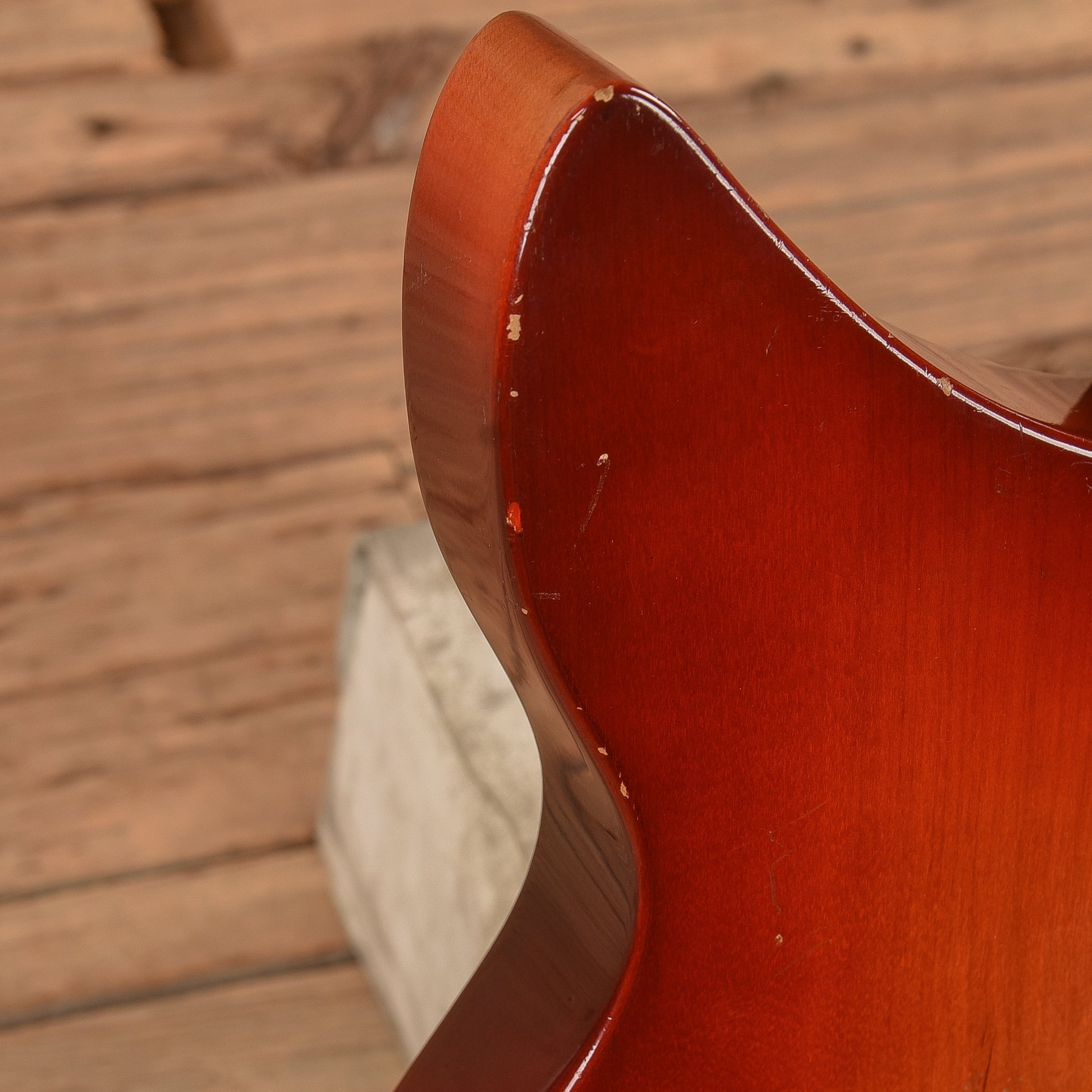 | Cosmetic Condition: | This vintage 335 is in good cosmetic condition with minor wear present. There is finish wear present on the fingerboard as well as minor scratches, dings, and dents throughout. |