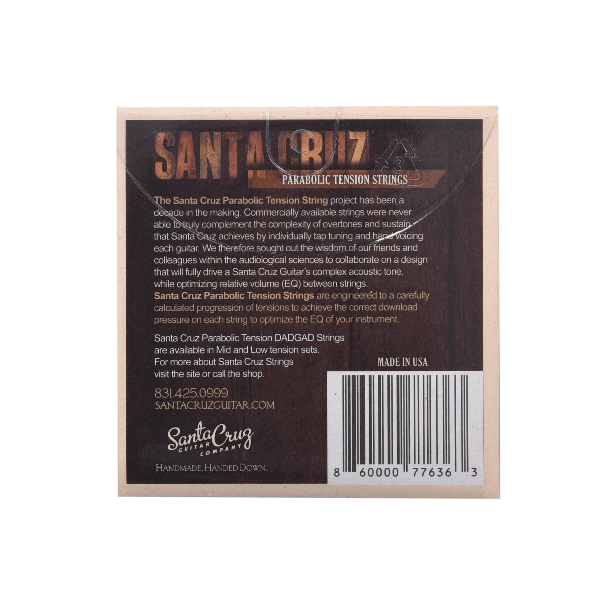Santa Cruz Strings are engineered to do what others cannot, to put the exact tension on each individual string to create the appropriate download pressure. These calculated tensions determine the optimal relative volume between strings, or EQ, for your instrument. Santa Cruz Strings require precise core to wrap ratios and precision fit and finish for unprecedented tolerances of one half of one thousandths of an inch. This accurately determines the tension/volume of each string to the exact EQ that your guitar was designed for. State of the art metallurgy and micro-coating assures long life by preventing corrosive moisture from contacting the core of these nickel and lead free strings.