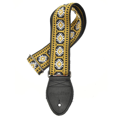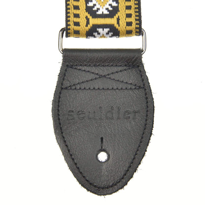 An Eco-friendly strap from Souldier, hand-made in Chicago from recycled auto seat-belts and salvaged leather. Each unique strap features a vintage fabric pattern on the top, a 2 inch wide seatbelt underneath, and end tabs made with 2-ply leather. These high-quality, durable straps will instantly add to the look of your guitar and make an awesome gift for any player! Souldier's straps and hand cut leather ends carry a lifetime warranty. Each strap measures a full 60". Souldier is an independent design manufacturer, fusing aesthetic textile creation with functionality, inspired by musicians and created for the connoisseur.
