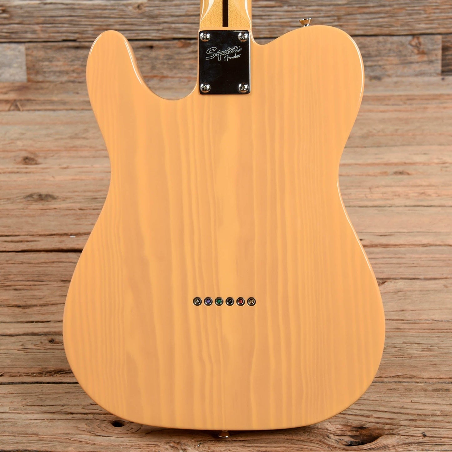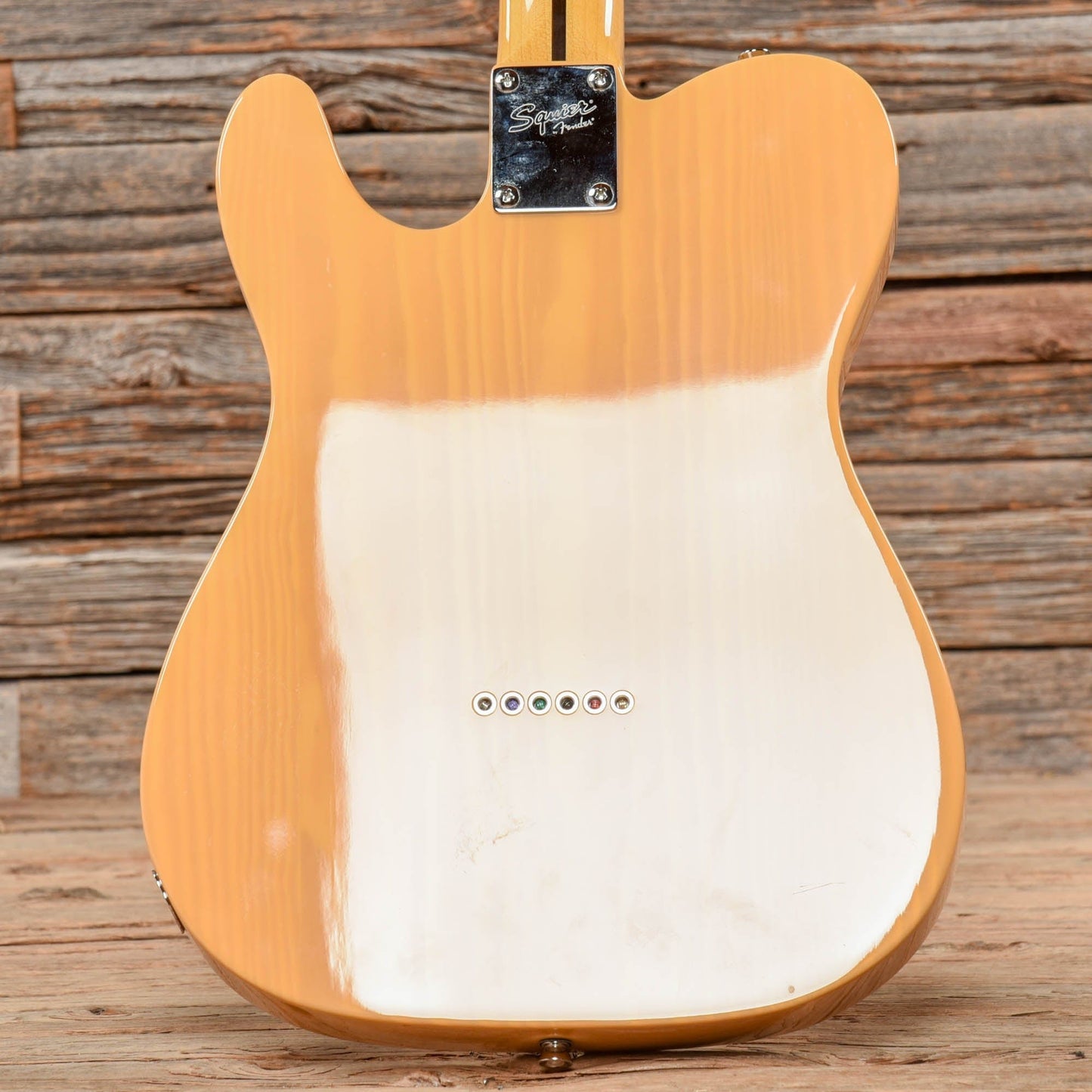 Electronics: Original Squier pickups with a three-way switch, a master volume pot, and a master tone pot.