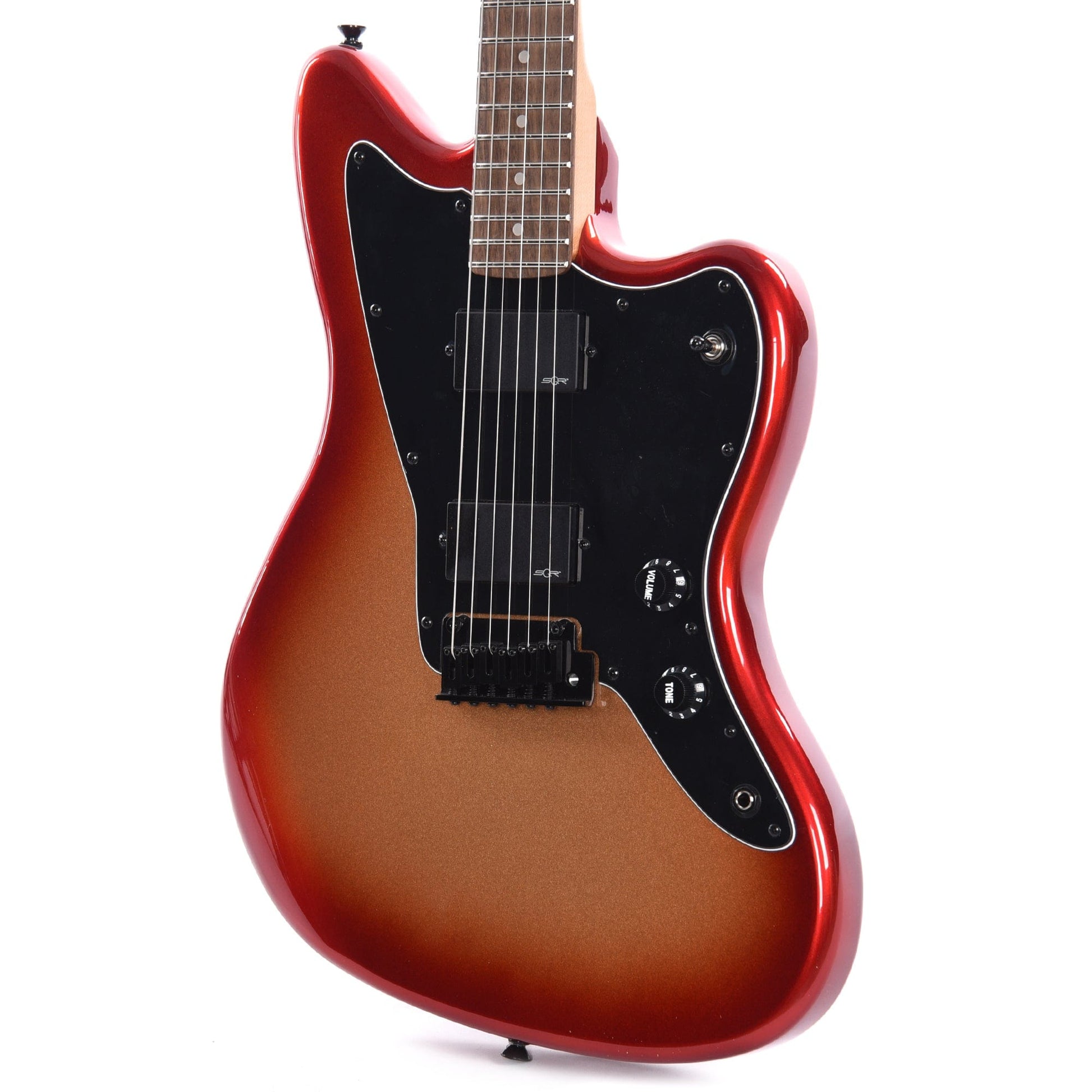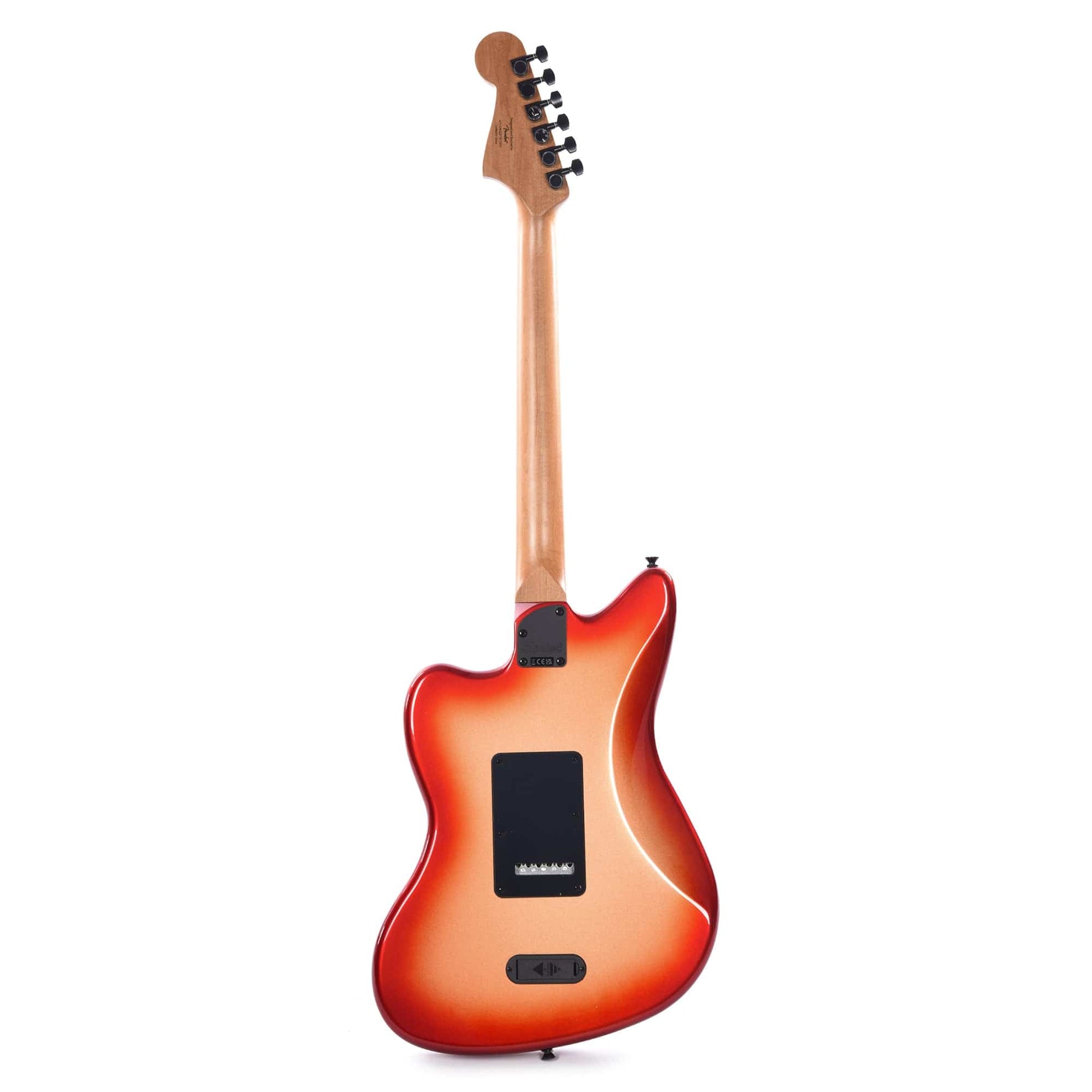 The Squier® Contemporary Active Jazzmaster® HH brings modern features and bold aesthetics to an iconic Fender platform to satisfy today’s most discerning and daring players. At the heart of this guitar is a pair of Squier SQR™ active ceramic humbucking pickups with 9-volt electronics for massive high-output signal. The roasted maple neck was chosen for its optimal tone and stability, and a sculpted heel design allows for improved access all the way to the 22nd fret. High-performance components round out the feature list and include a 2-point tremolo bridge for superior feel during bends, and a set of sealed-gear tuning machines with split shafts for smooth tuning action and easy restringing. Eye-catching styling cues include stealthy black hardware and a sleek painted headstock with chrome logos for a premium look.