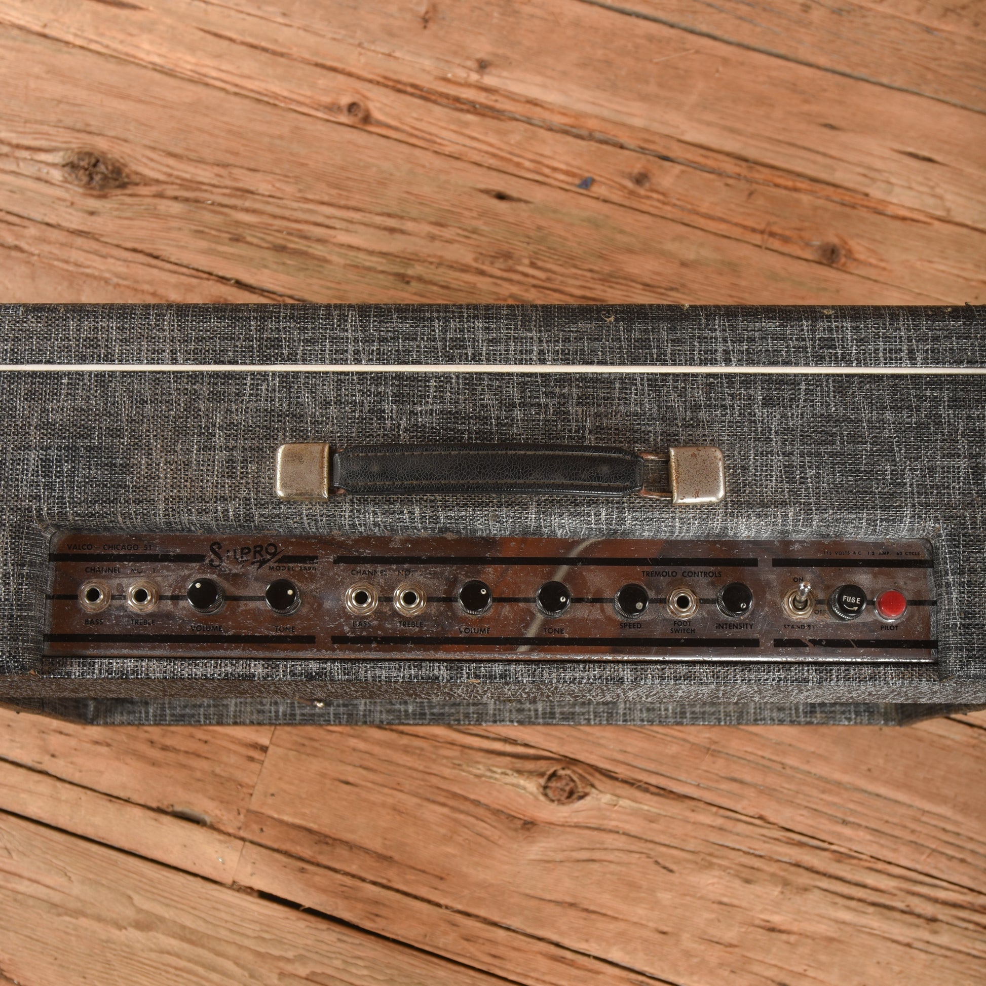 Amp Condition: This vintage Supro amplifier is in very good condition, with light cosmetic wear to the covering and faceplate.