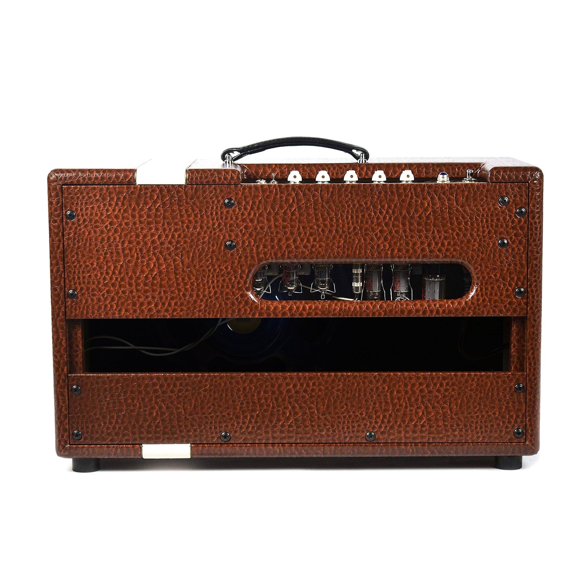 While the MOD 84 had its beginnings within that cool, yet humble, suitcase, it's morphed into something far more. This is the new shop favorite and just such a blast to play! The MOD 84 is a strong 15wpc, powered by two EL-84 with 12AX7 first stage and our favorite 12DW7 for that great Swart reverb. Once again, Michael employs a very simple tone cut that follows our less is more for lower wattage amplifiers. And our new 3 way interactive EQ switch gives the user subtle yet defined control with three settings that actually interacts with the volume and attack. Add in the excellent Swart tube tremolo stage along with our favorite tube rectification, and you have a legitimate rival to the AST but with that bit of EL-84 take.