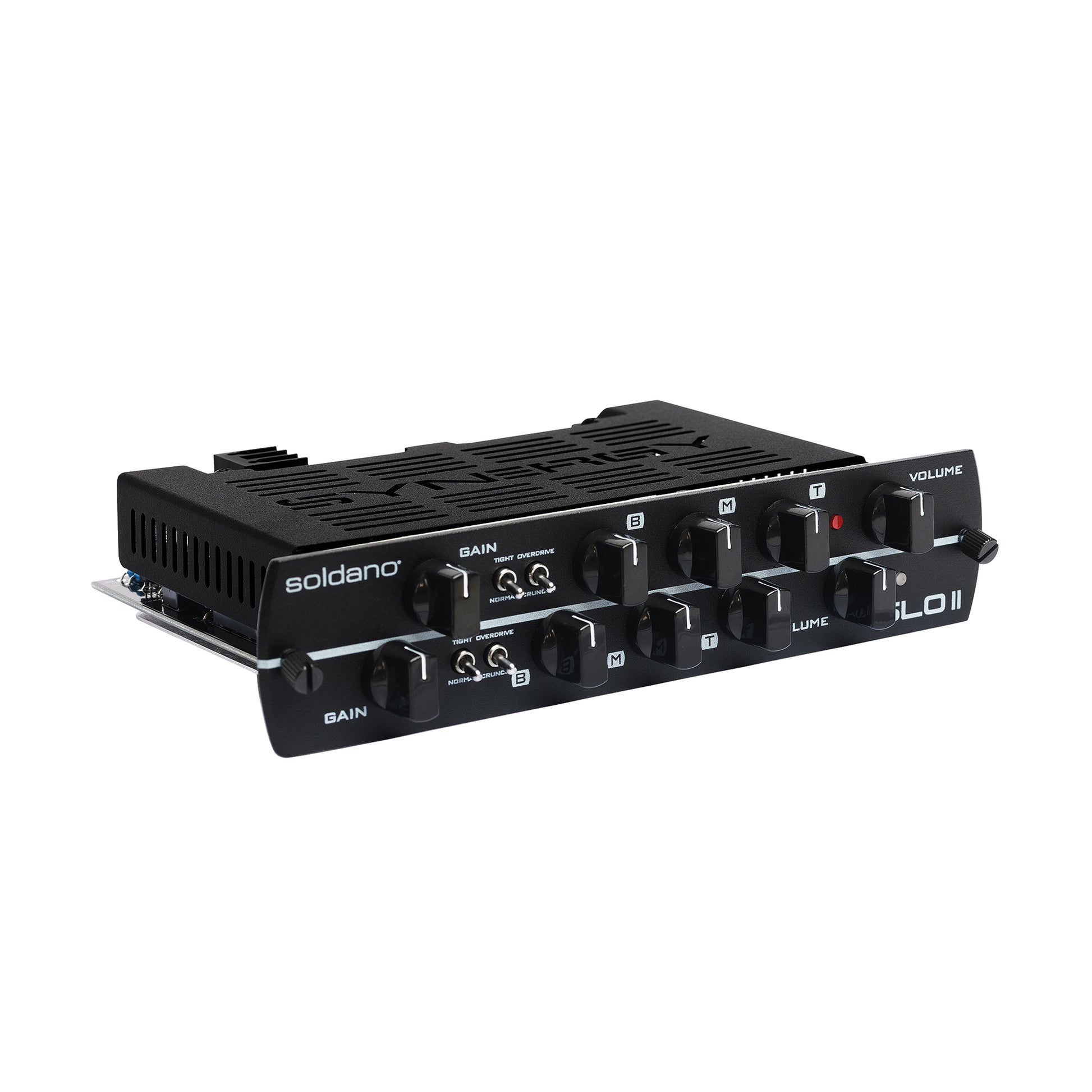 All high-gain fans need to experience playing the Soldano SLO-100. Thanks to the Synergy Soldano SLO II preamp module, it's never been easier. But the SLO module isn't some modeling or emulation of Soldano's beloved circuit. Mike Soldano designed this dual 12AX7-powered preamp to elicit the same thick sound, creamy gain, and endless sustain of his original amp. Thanks to the Synergy Soldano SLO II preamp module, nailing the elusive tone of a cranked Soldano SLO-100 is easily within your reach.