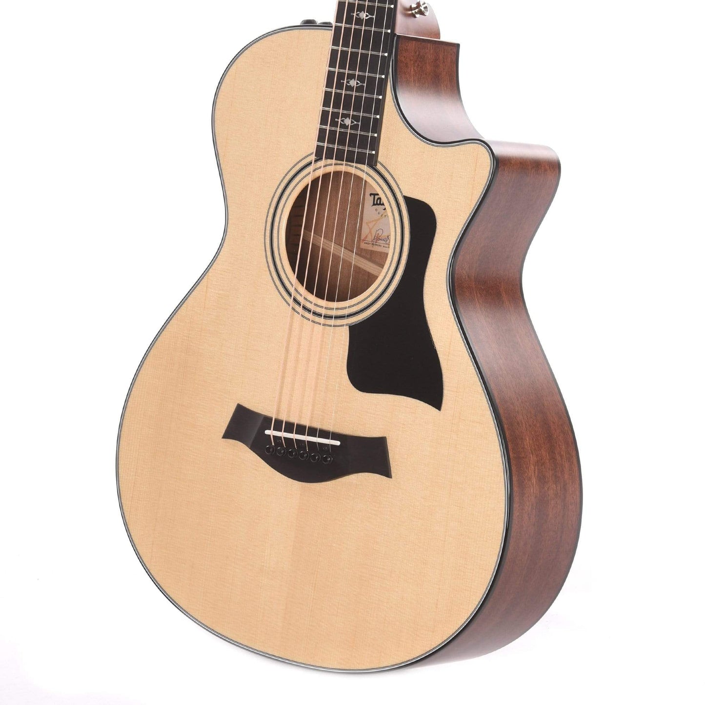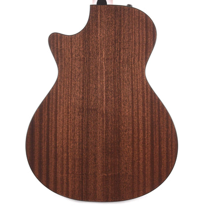 The Taylor 312ce Grand Concert Sapele/Sitka spruce 12-fret cutaway models offer the comfort of a slightly smaller body and string scale length, with a modern feel and articulate response, with a modern feel and articulate response—as well as easy access to the upper frets allowed by the contoured cutaway—while the bright, shimmering Sapele back and sides paired with a strong, yet elastic, Sitka spruce top yields crisp articulation, suitable for everything from aggressive strumming and flatpicking to fingerpicking. Plus, Taylor’s ES2 electronics provide ample tonal control and responsiveness.