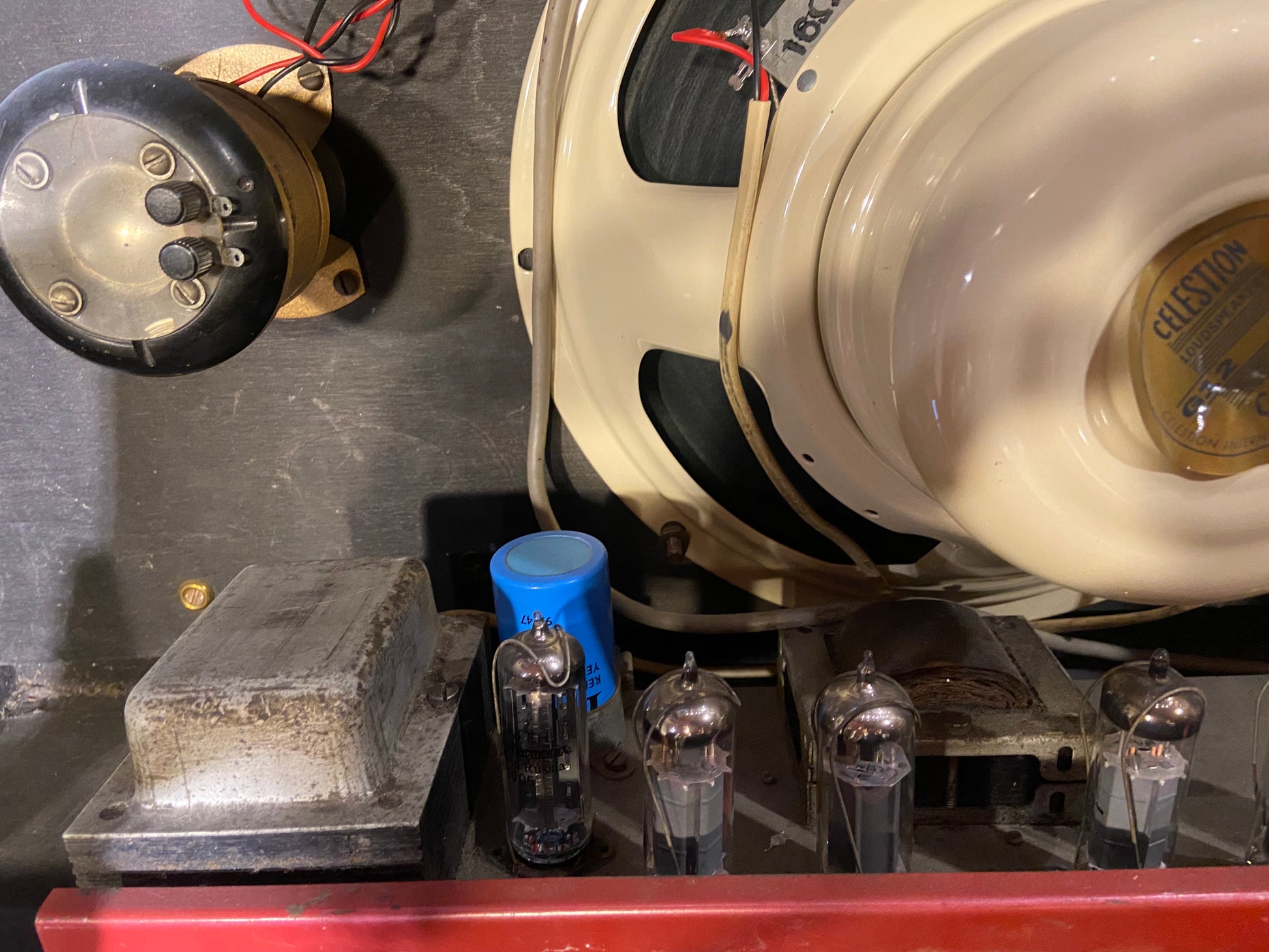 Belongs to Richard Fortus of Guns and Roses. This is the amp he got by mentioning that he was looking for one in one of our videos when we were selling his collection. He ended up with two and is selling one of them. It was cleaned up and serviced by his good friend and amp guru Obeid Khan. Extremely rare amp. It's unknown, but some sources suggest less than 250 were made. Used by the Rolling Stones in early recordings.