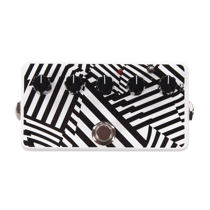 Razzle Dazzle is a more fanciful name for Dazzle camouflage developed and deployed by the UK and US military in World War I. In an effort to avoid being targeted for torpedo attacks by German U-boats (submarines) thousands of our ships were painted with a variety of wild stripes to confuse the enemy about identity, direction and speed. We’ve used the dazzle style on this pedal as an homage to the ingenuity of wildlife experts, scientists and graphic artists coordinating with our military to protect our troops at sea.